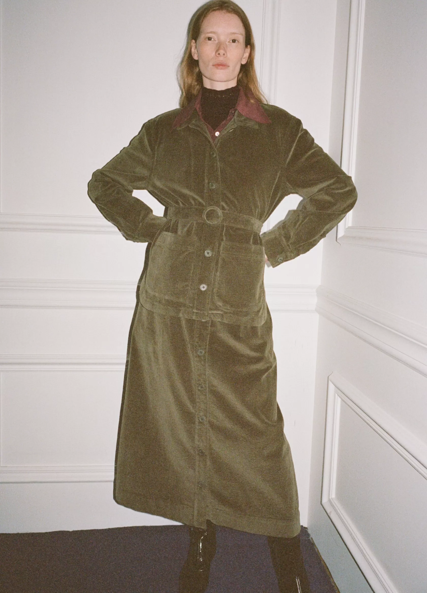 The Carine corduroy skirt features a high waisted and A-line silhouette and a removable belt.Details:self-98% cotton, 2%…