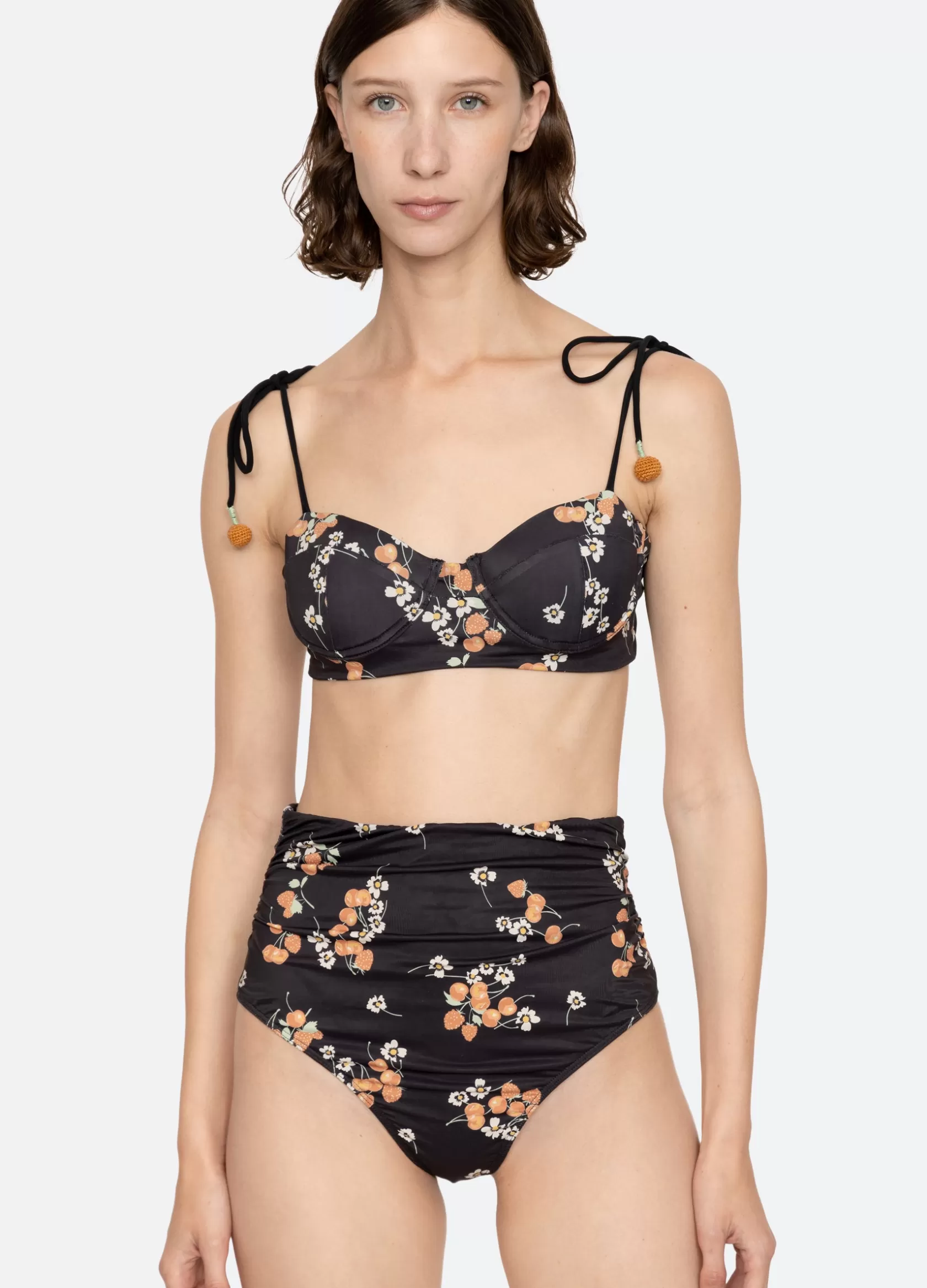 The Cerise fruit print bikini bottom features a high waisted silhouette with ruched detailing. Details:88% polyester, 1…