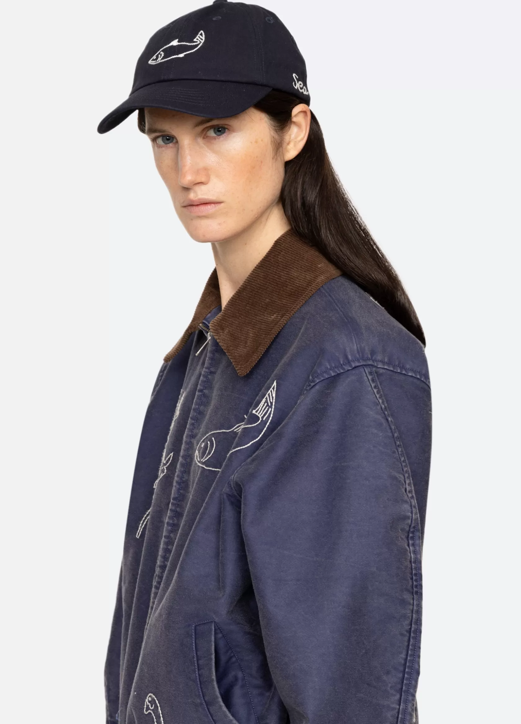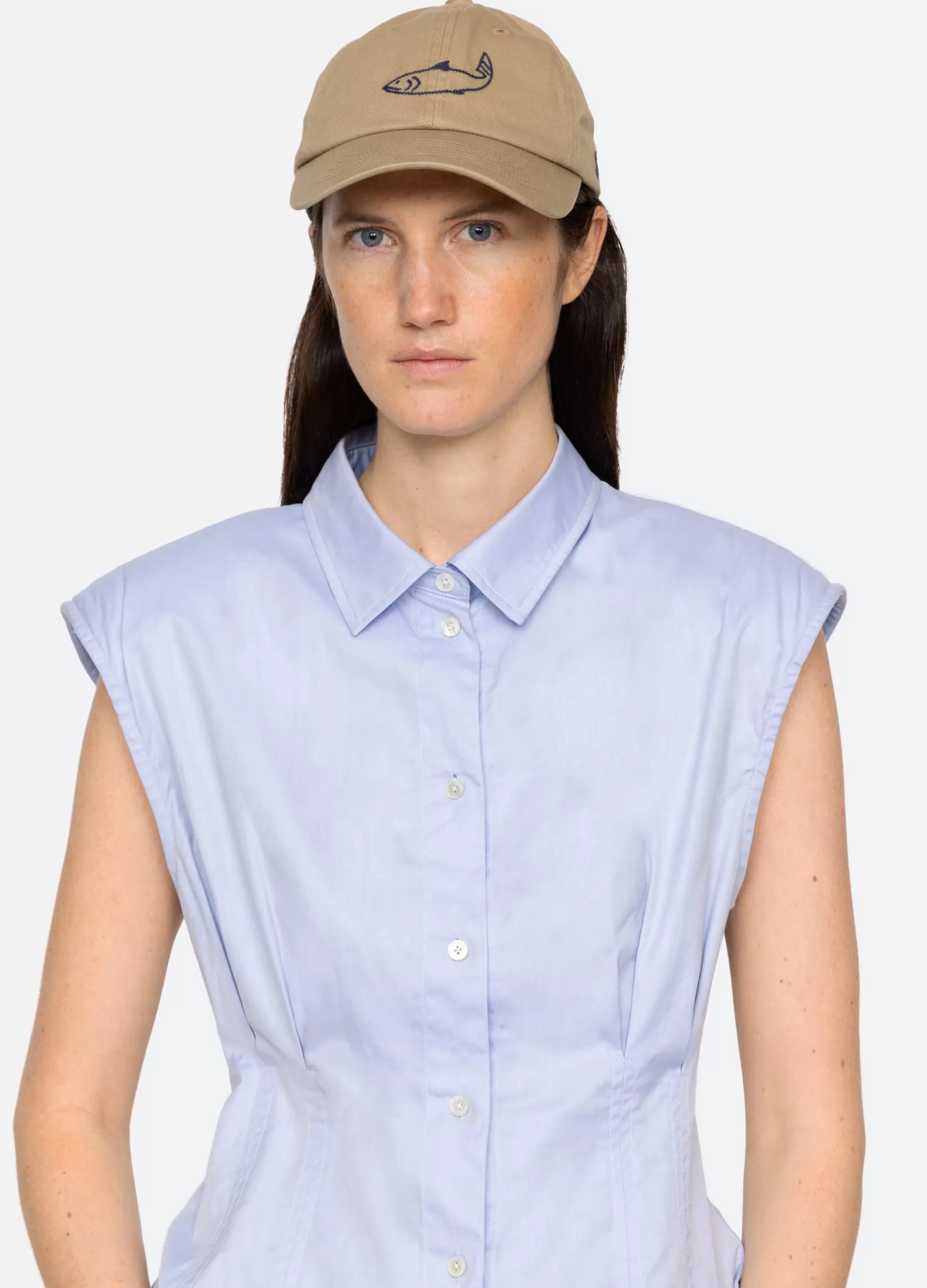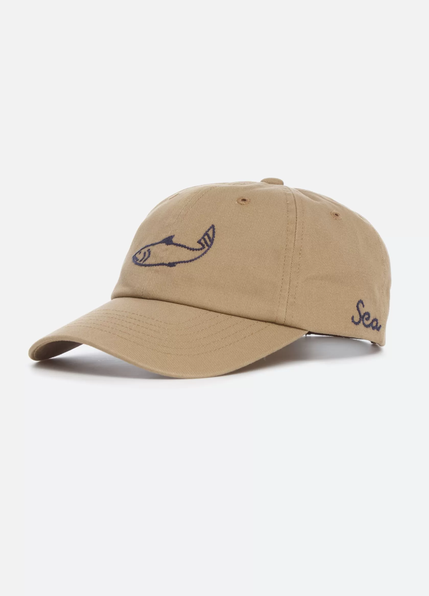 The Demi french wear cap features an embroidered fish.