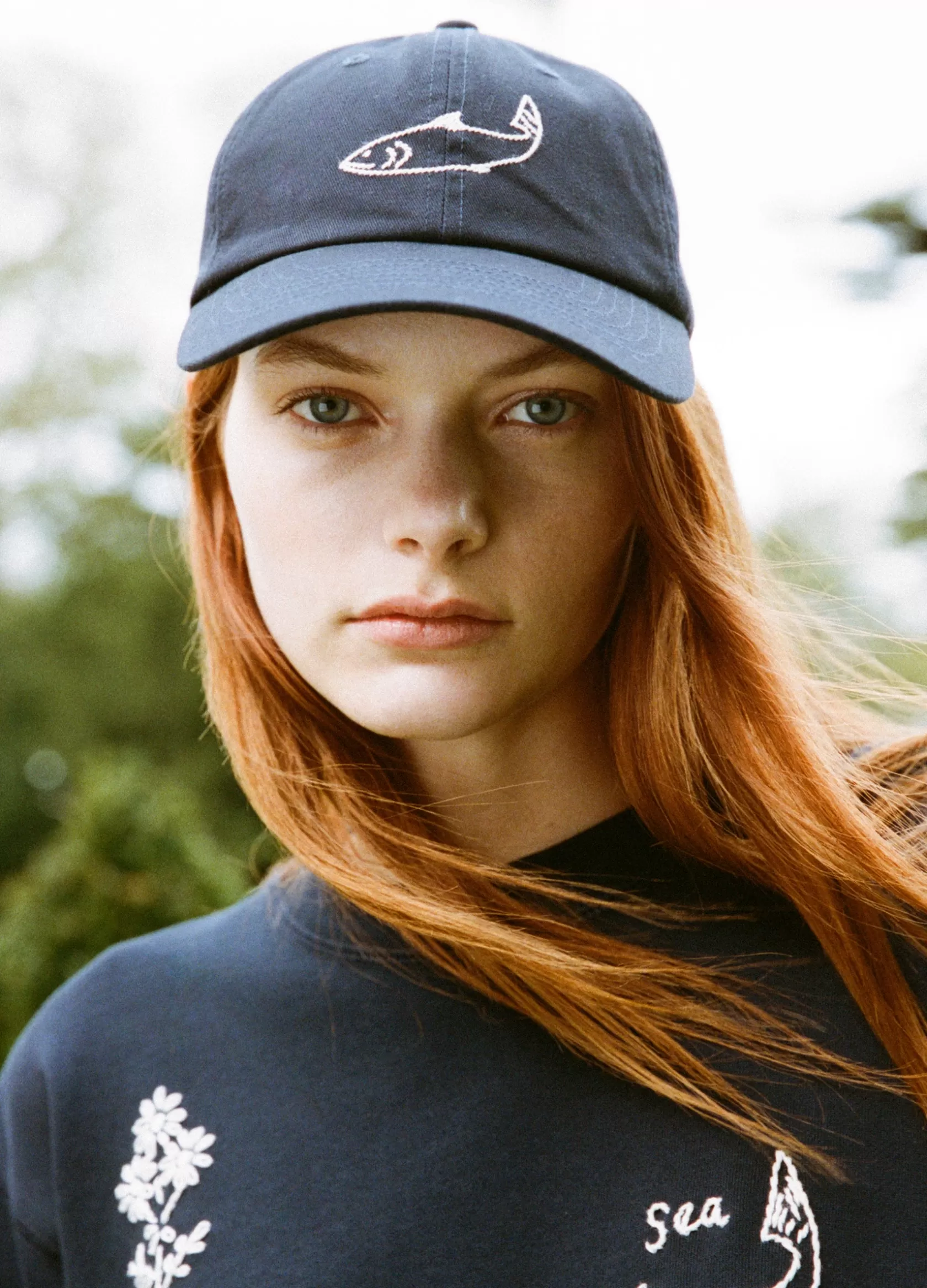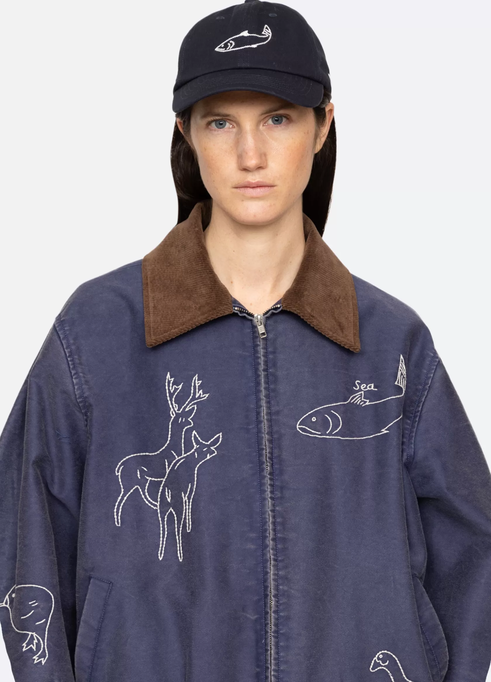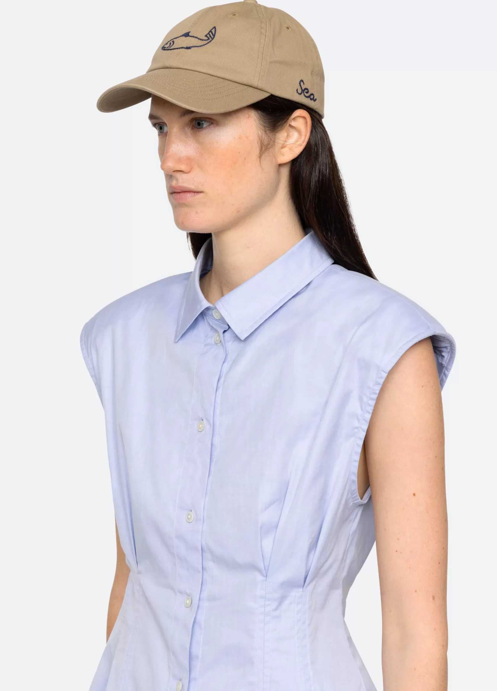 The Demi french wear cap features an embroidered fish.