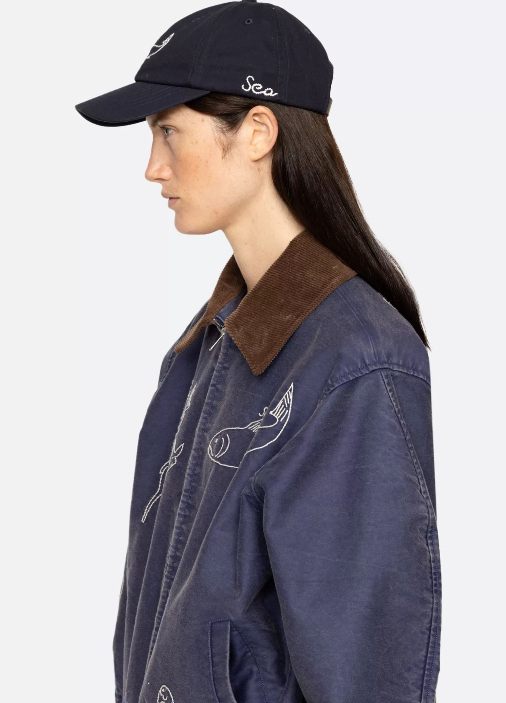 The Demi french wear cap features an embroidered fish.Details:self-100% cottondecoration-100% leatheradjustable back str…