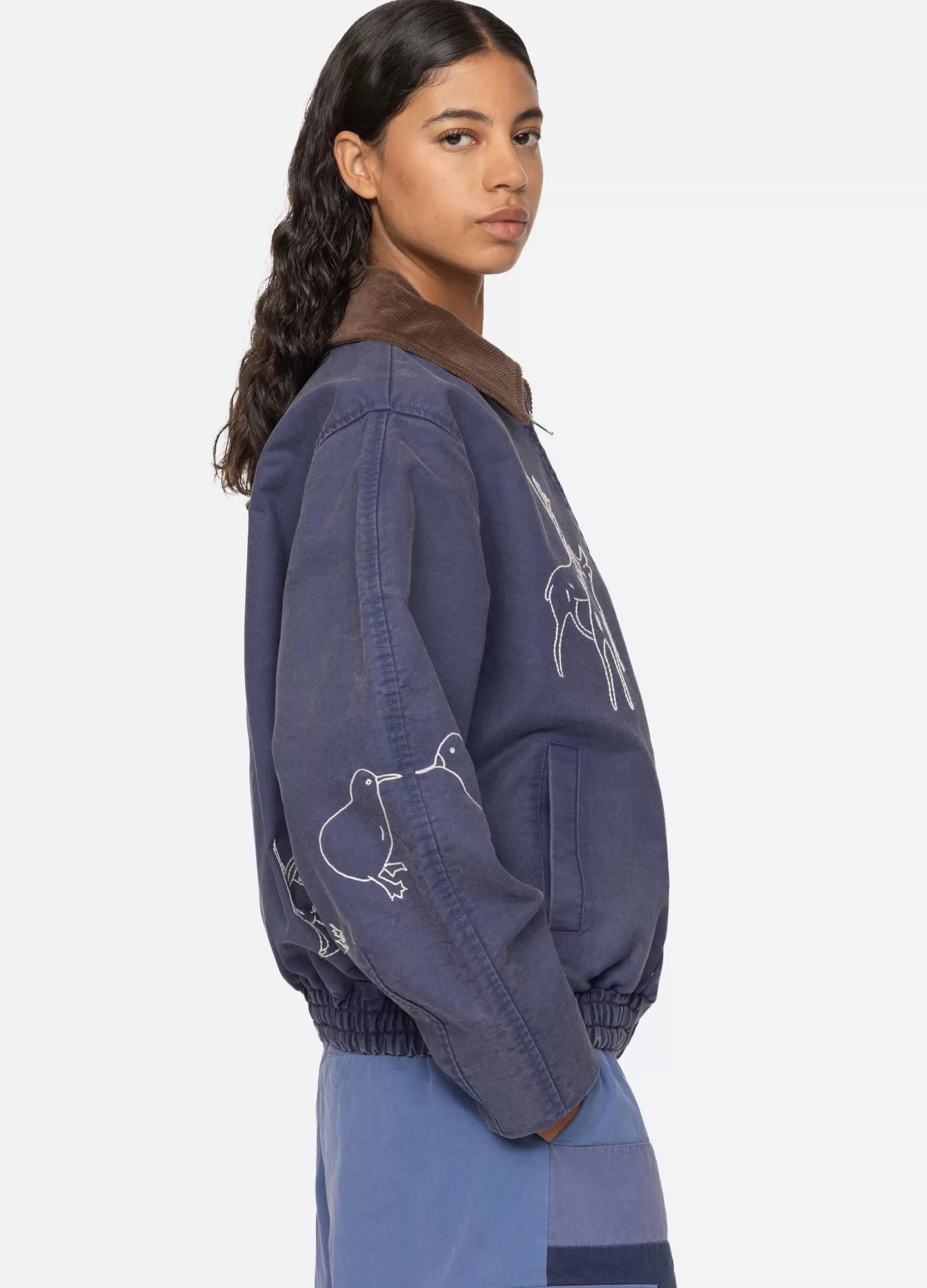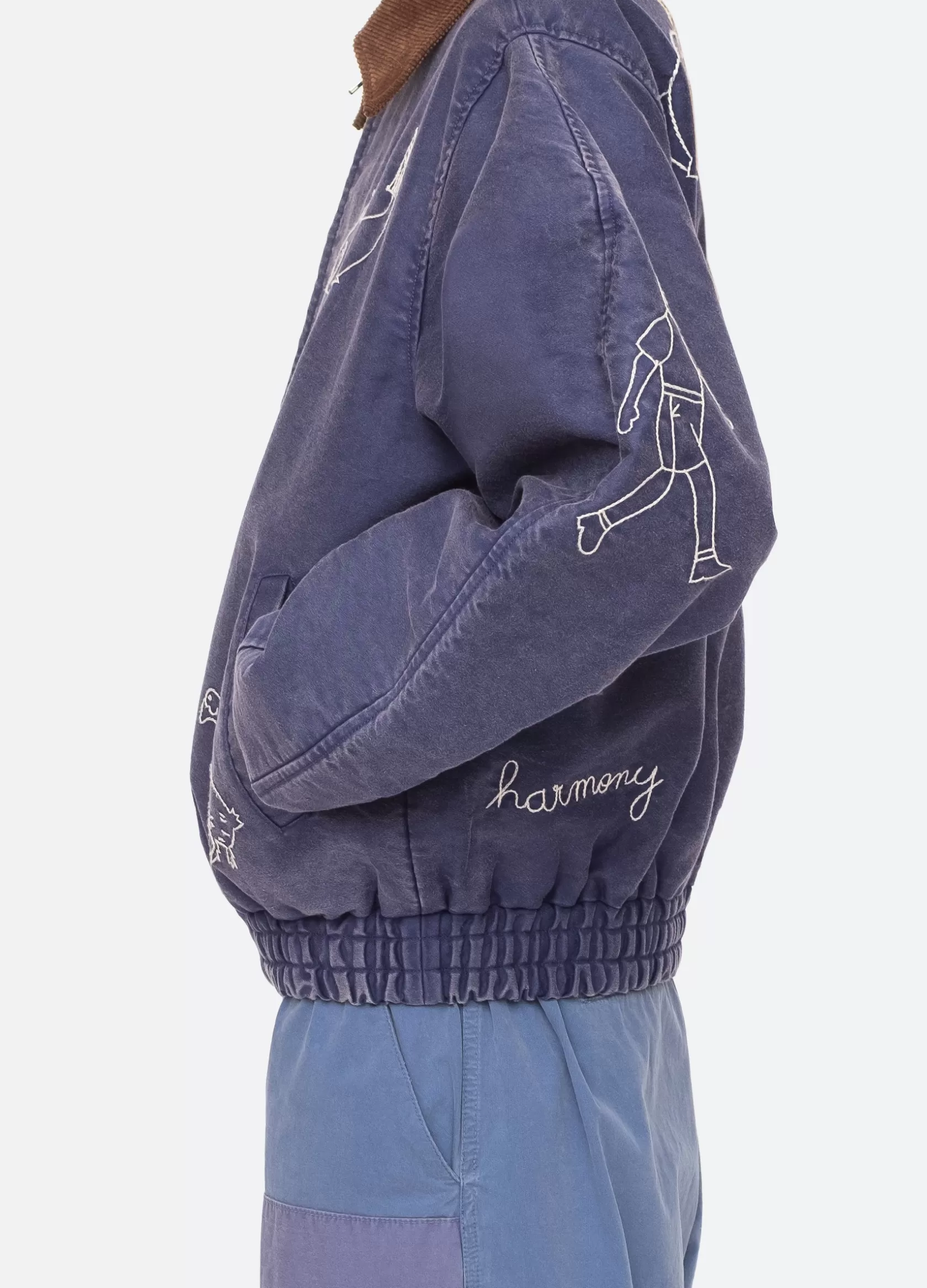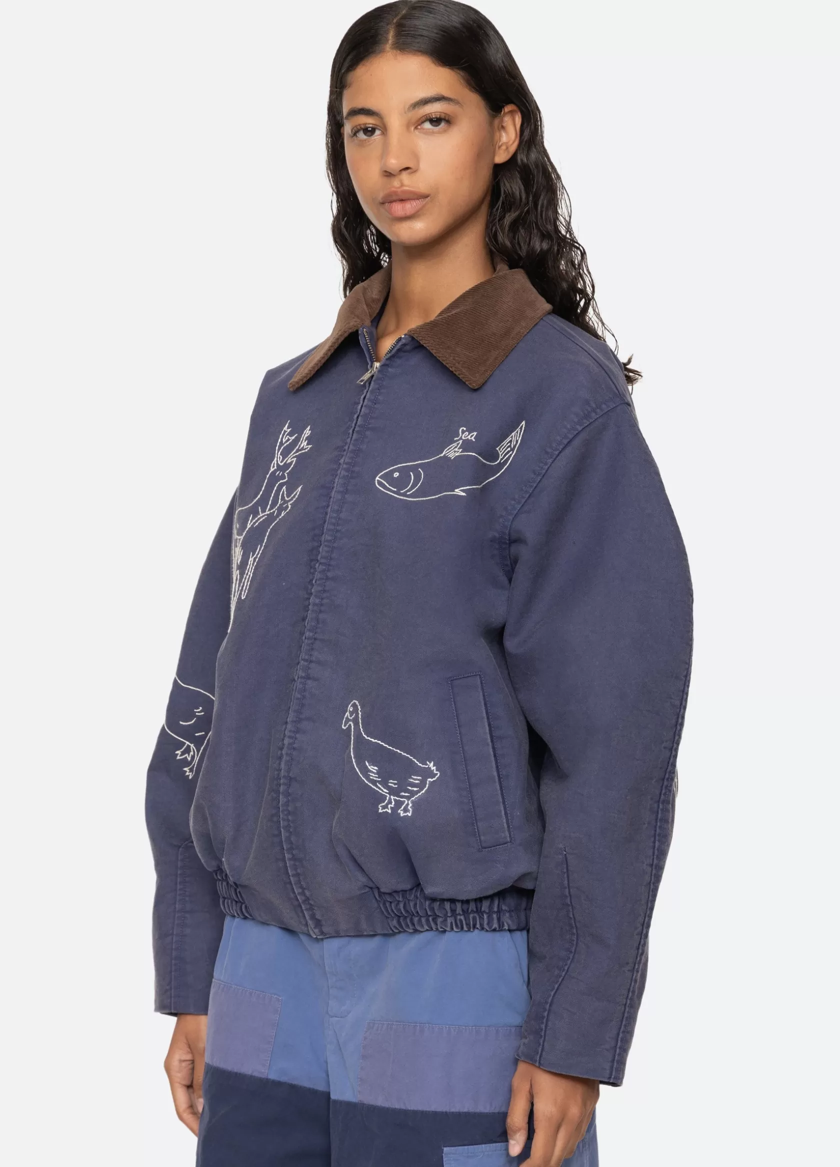 The Demi french workwear jacket features an oversized silhouette, embroidered detailing throughout and corduroy collar.