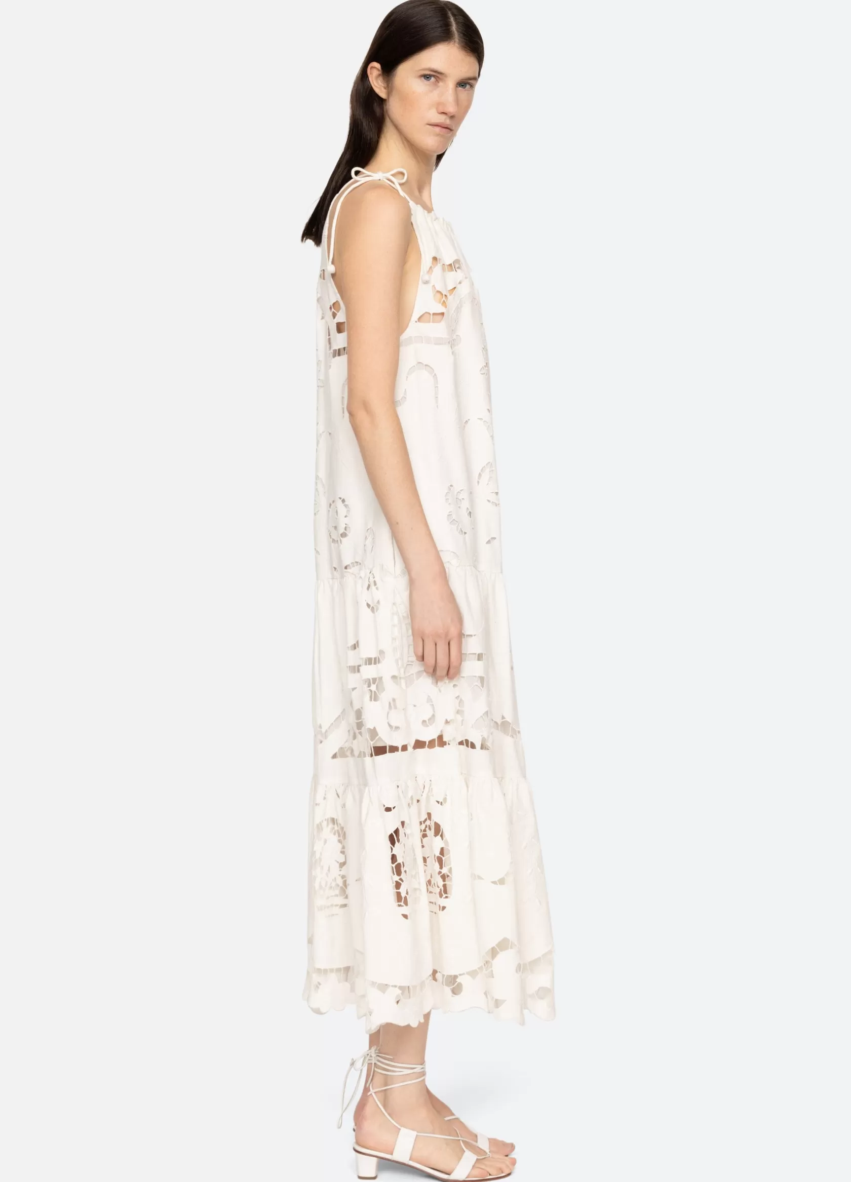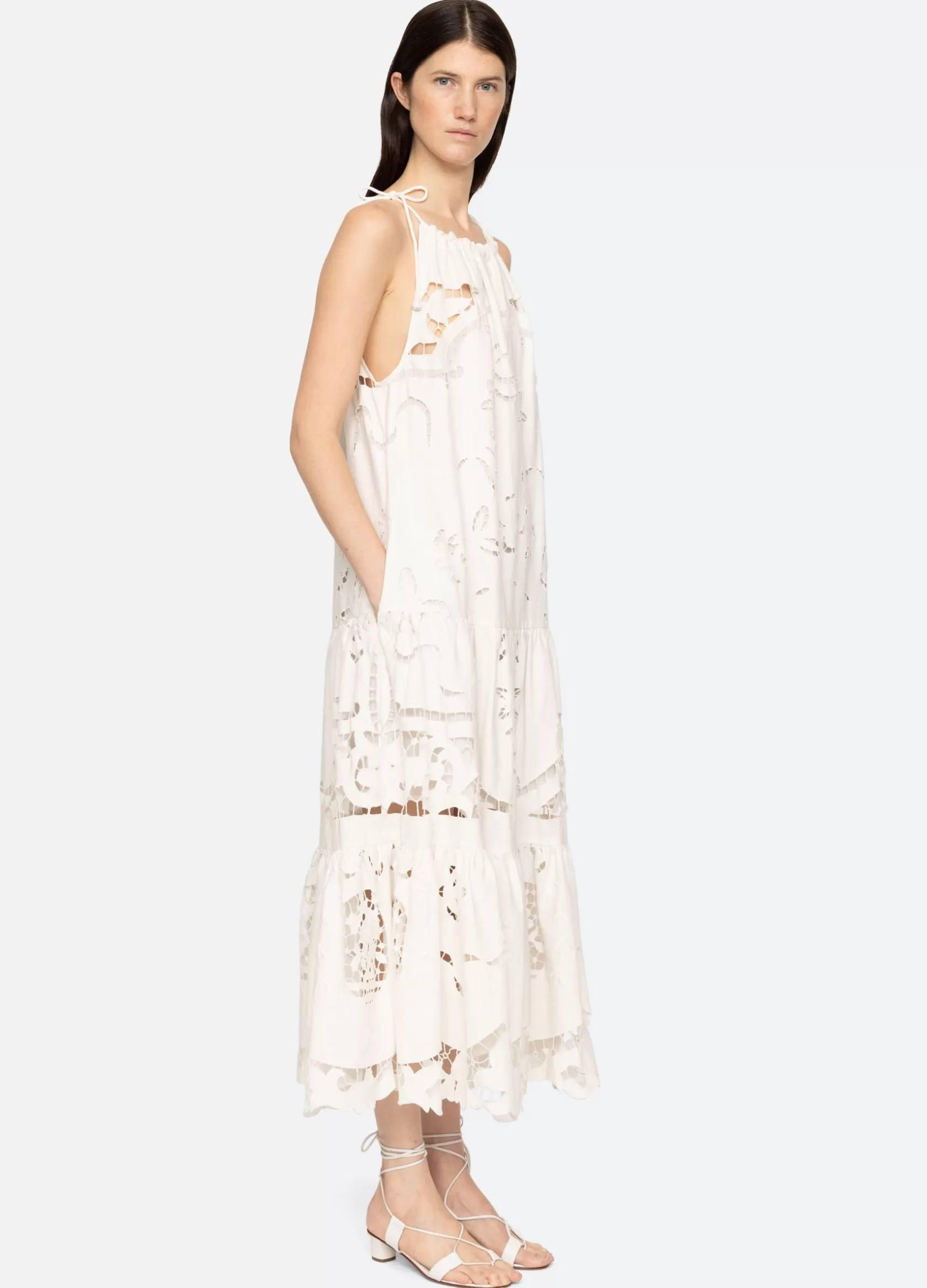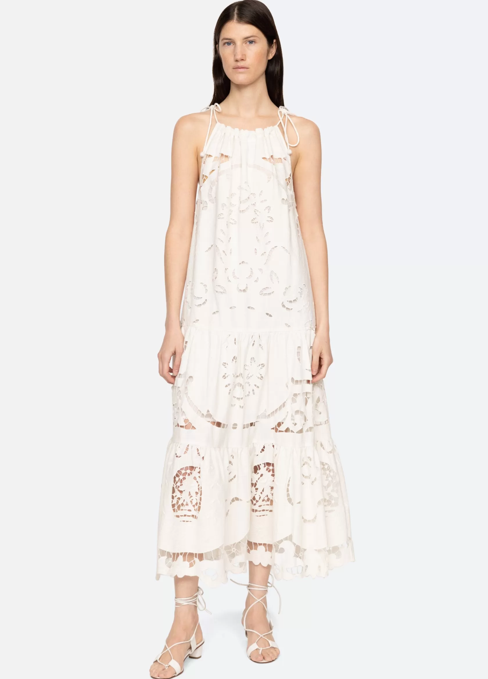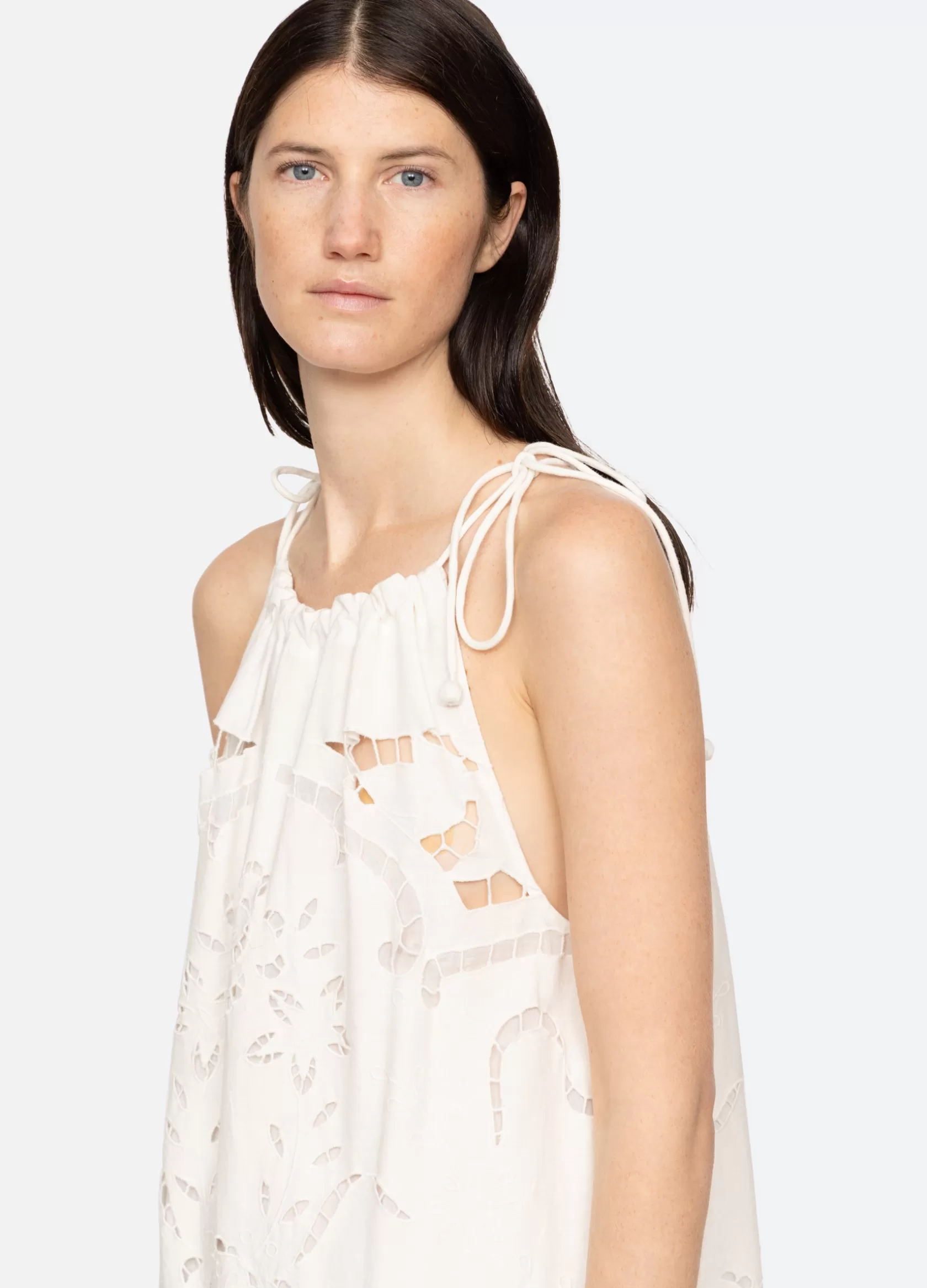 The Edith halter neck dress features embroidered detailing throughout. Designed for an easy, relaxed fit.
