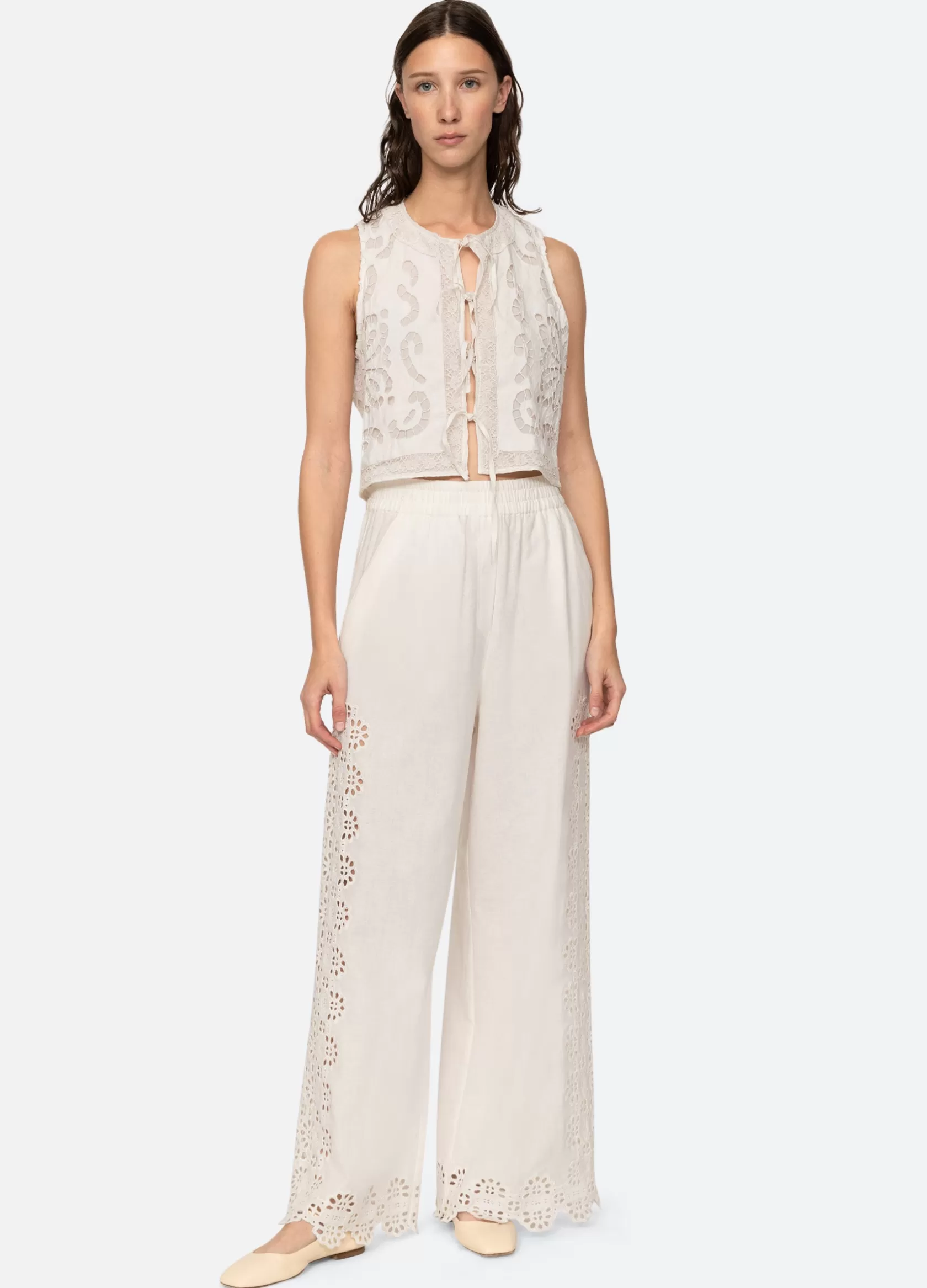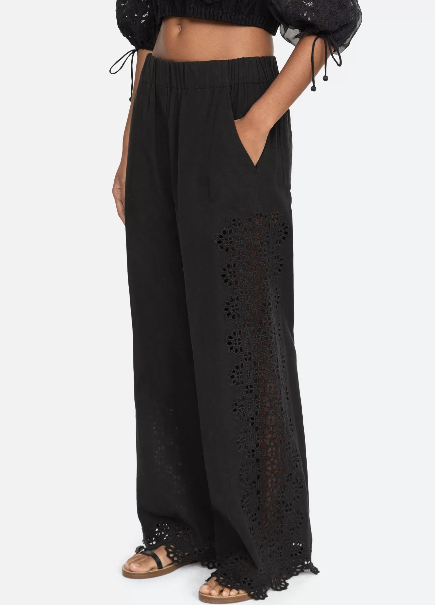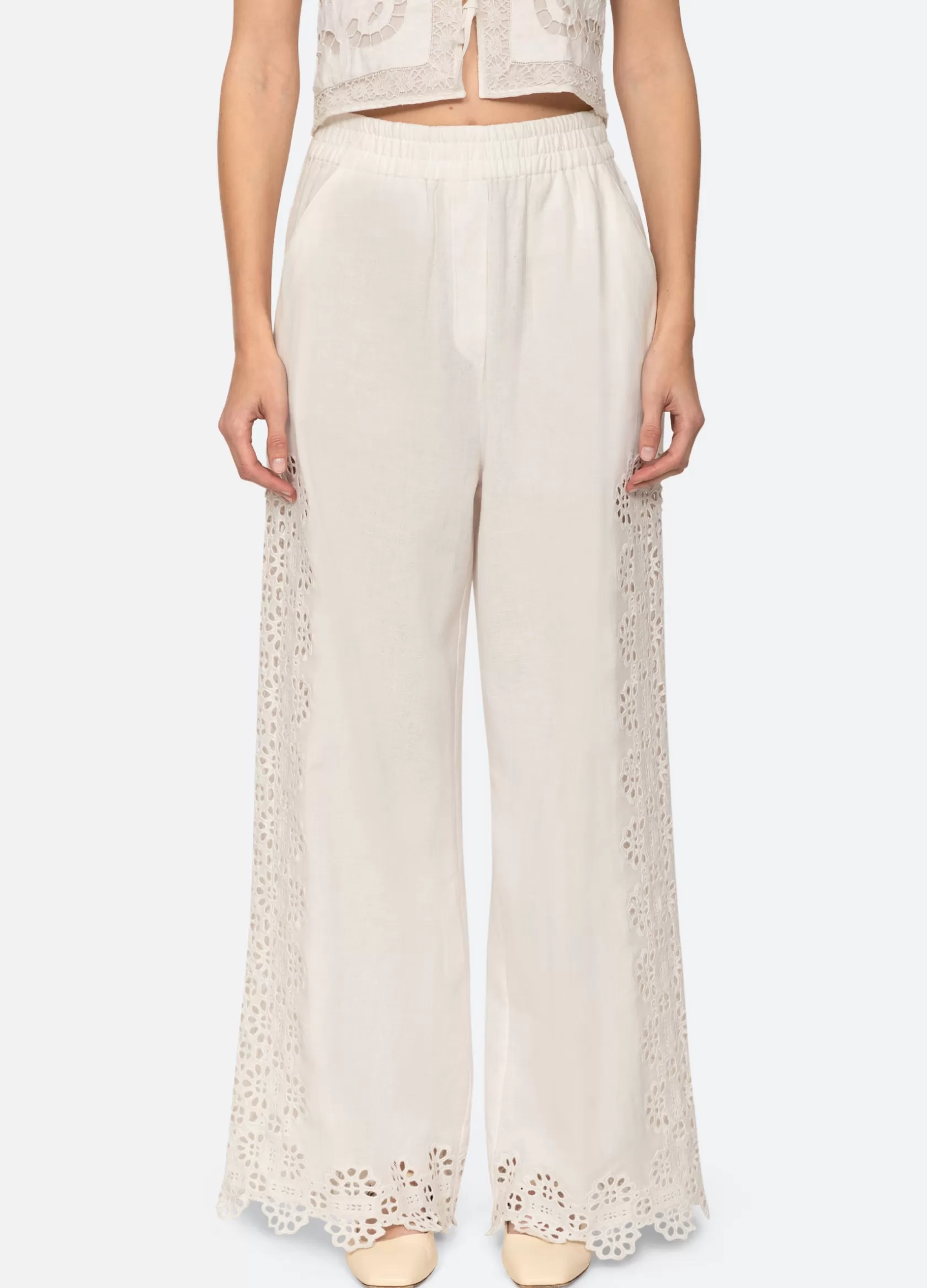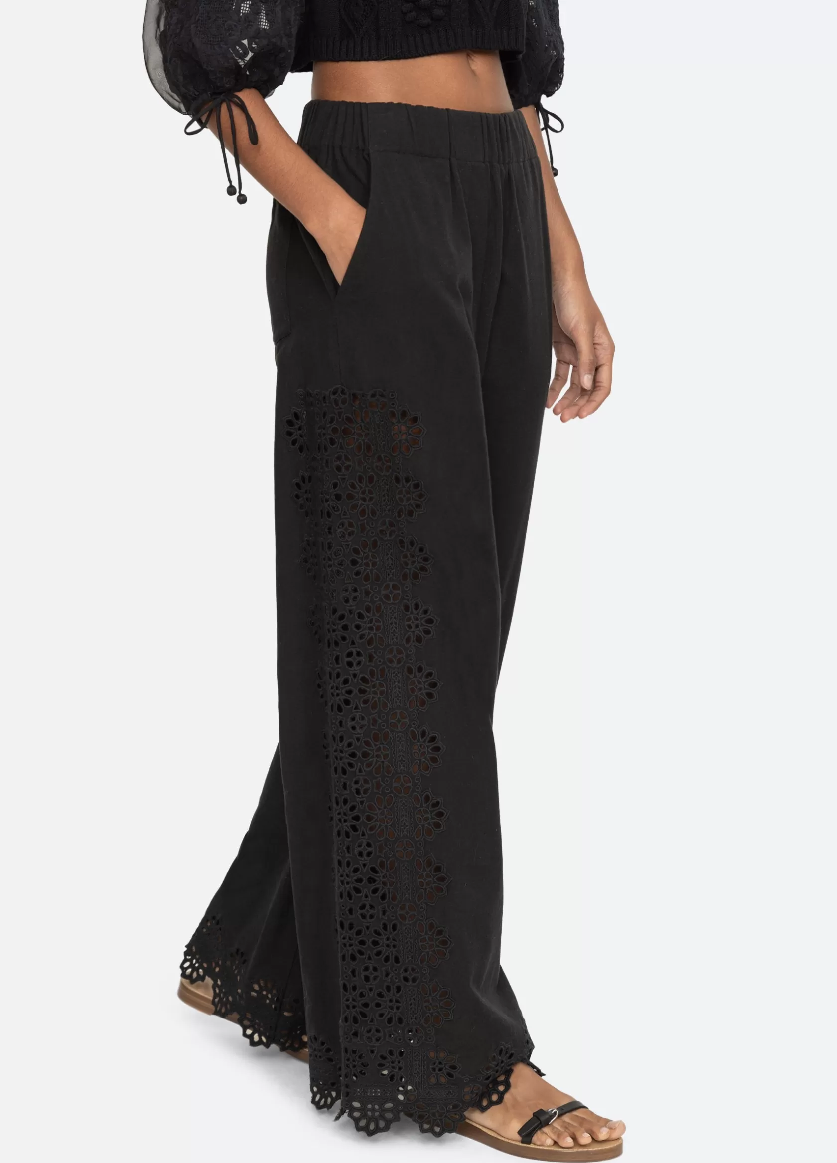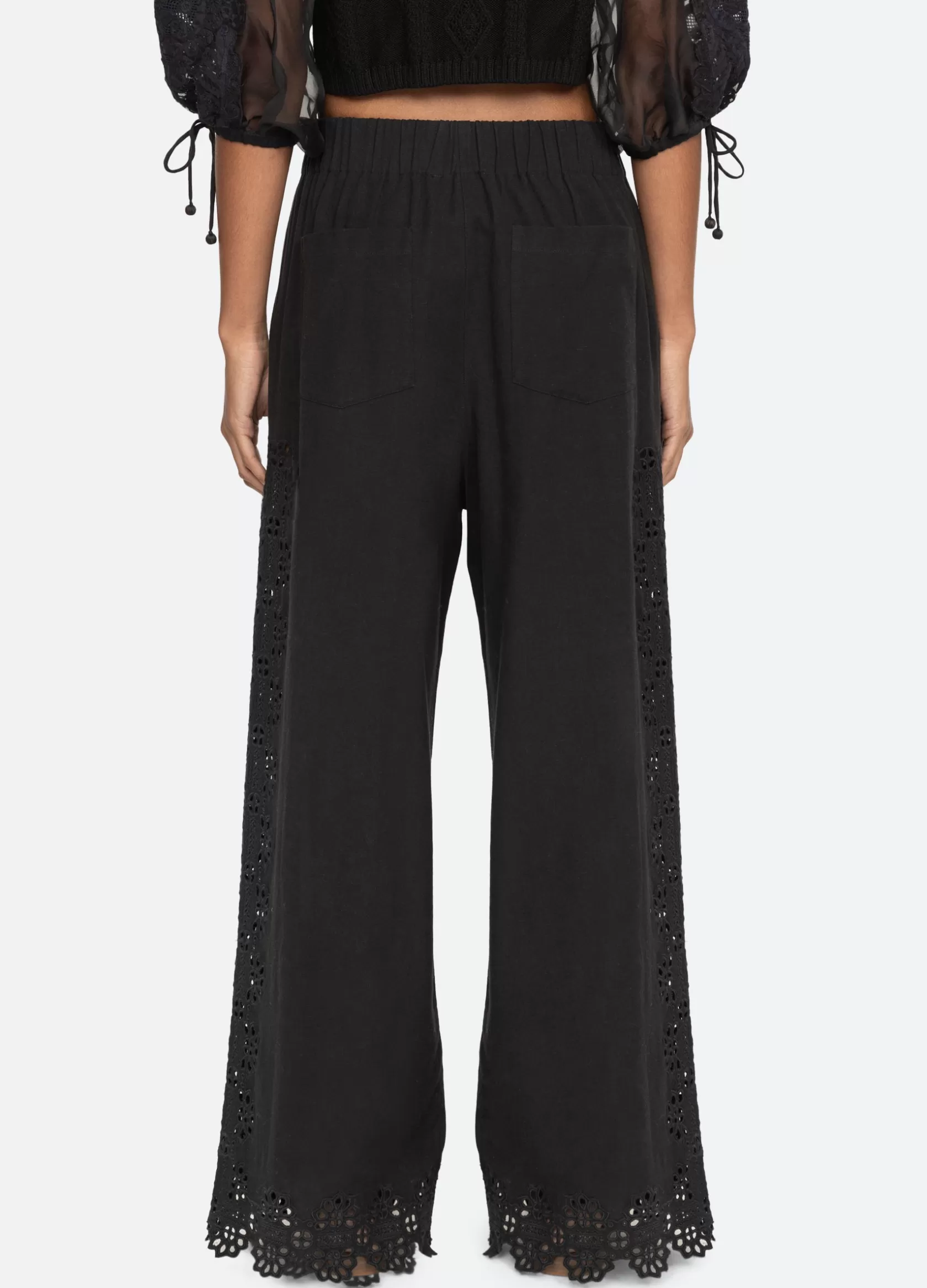 The Edith pants feature an elasticized waistband and embroidered detailing down the side of the leg. Designed for an easy, relaxed fit.