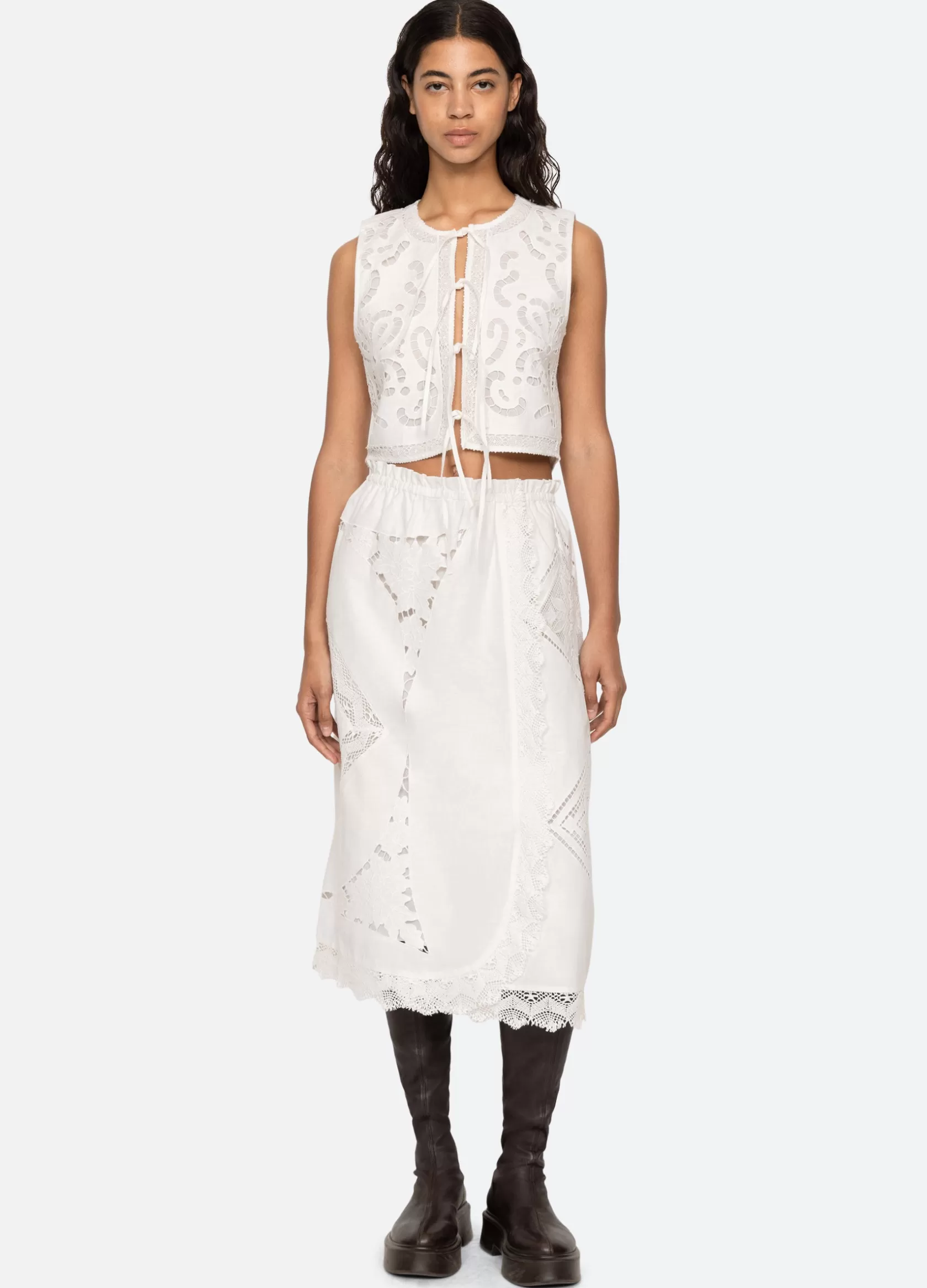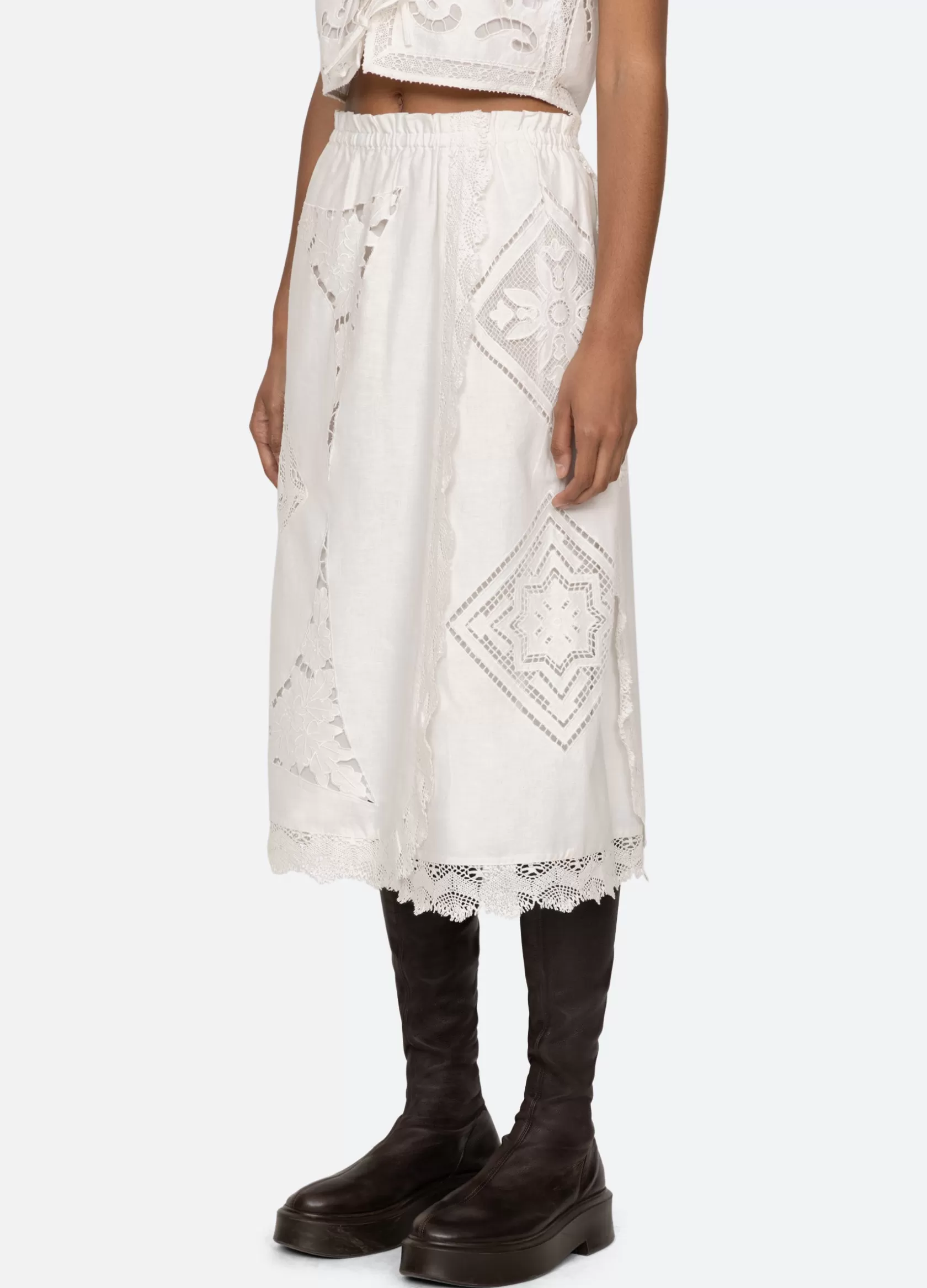 The Edith skirt features an elasticized waistband and embroidered detailing throughout.Details:self-90% cotton, 10% li…