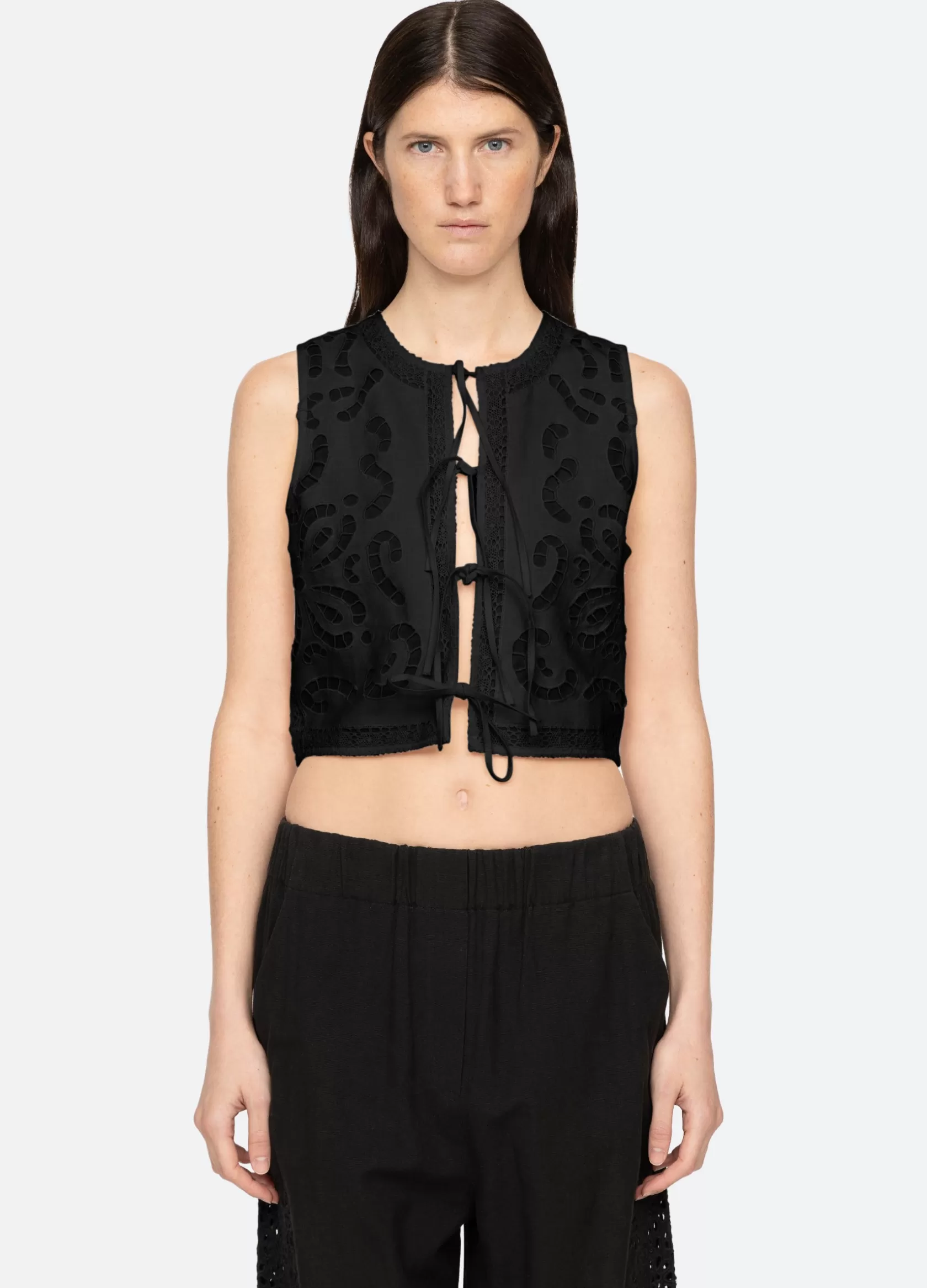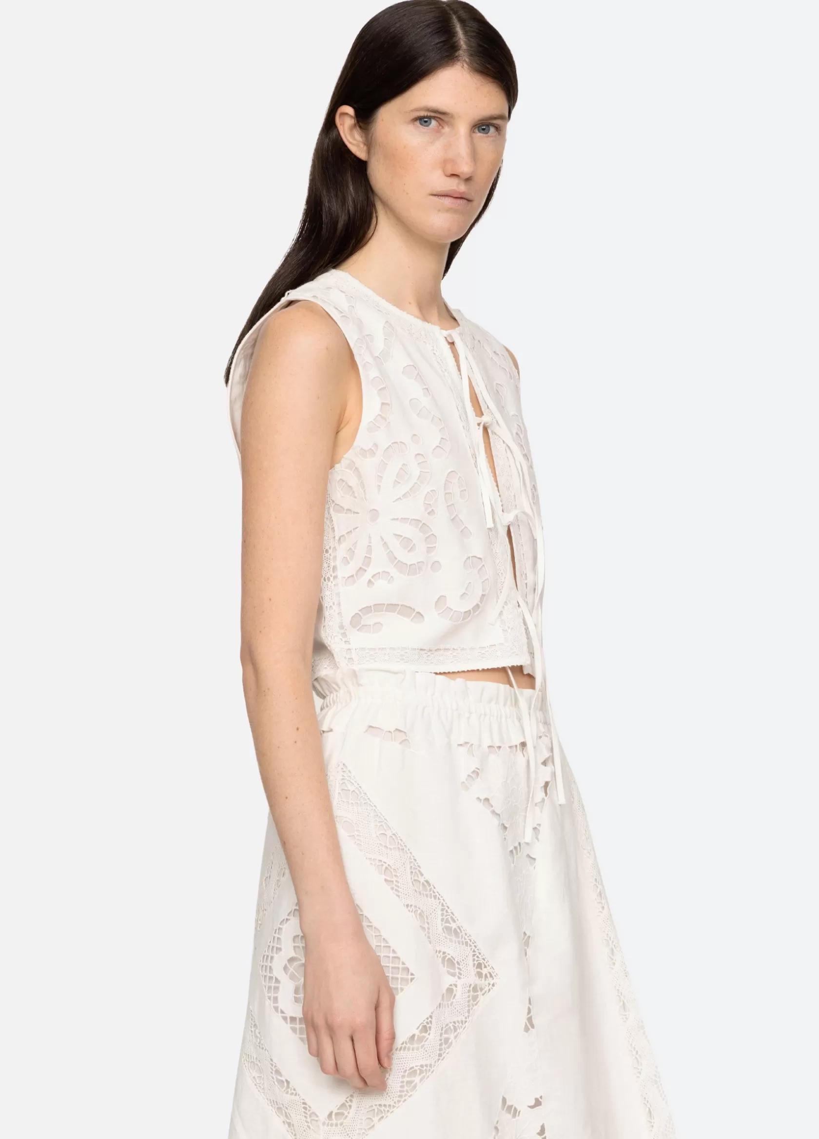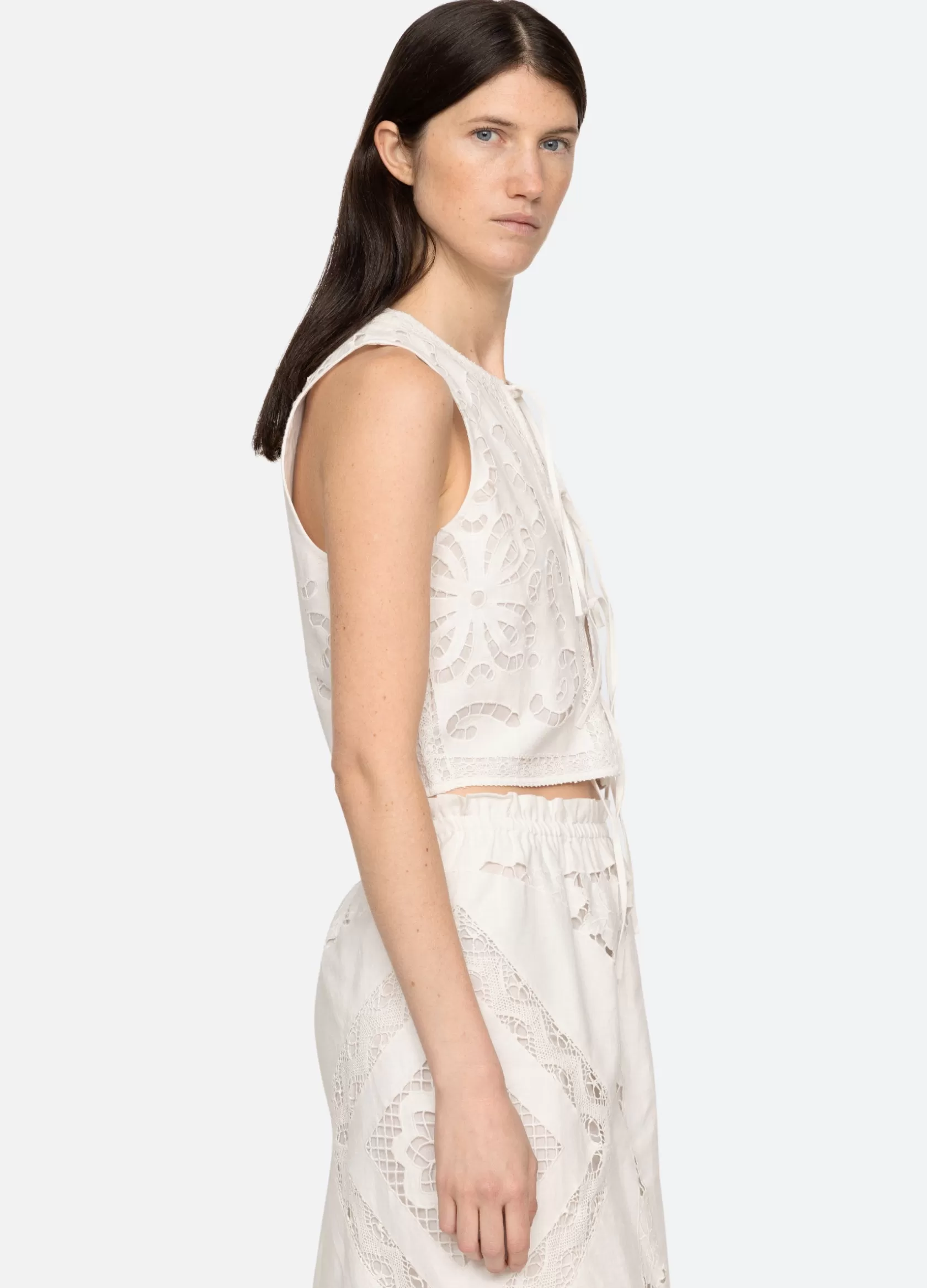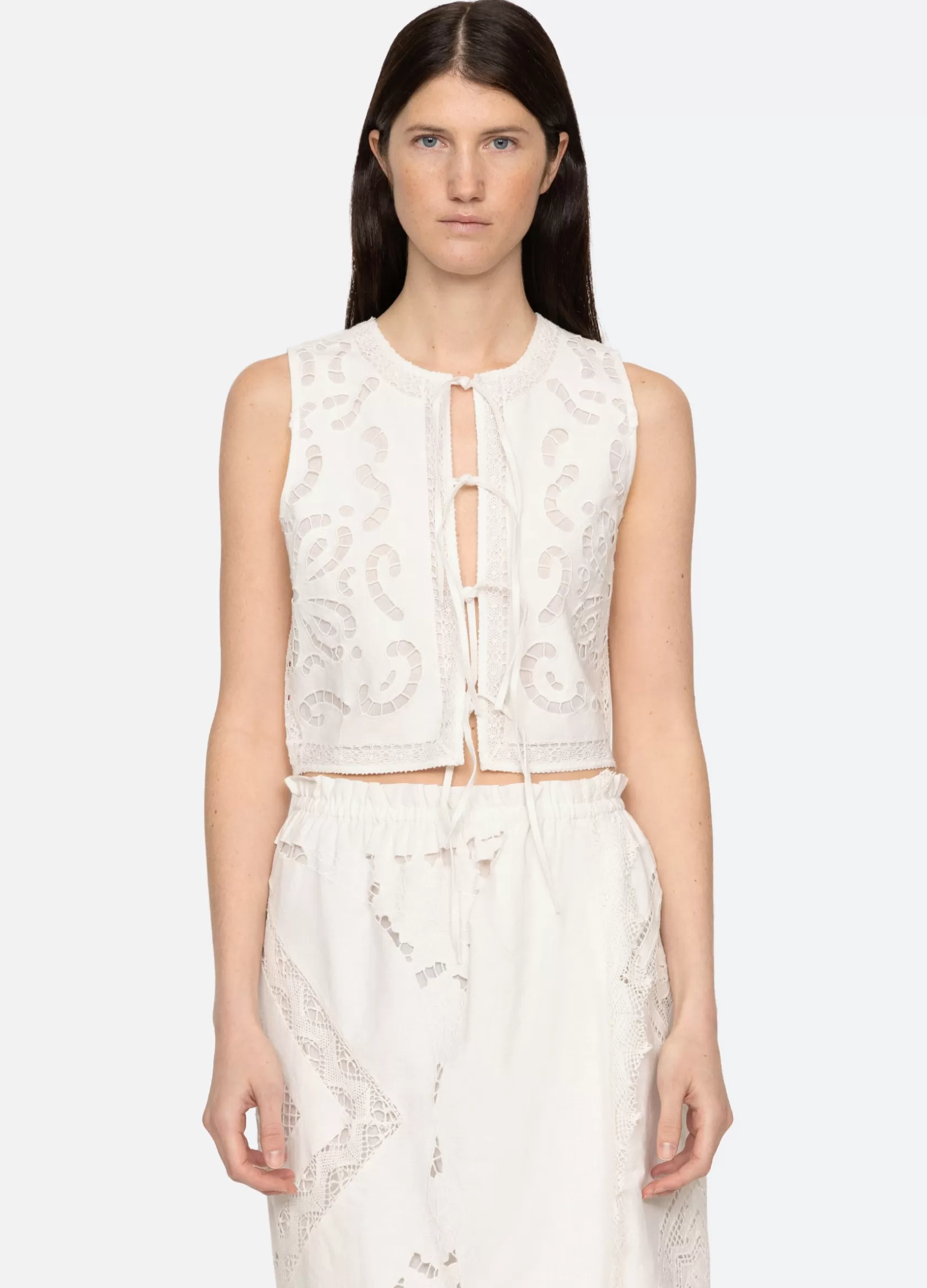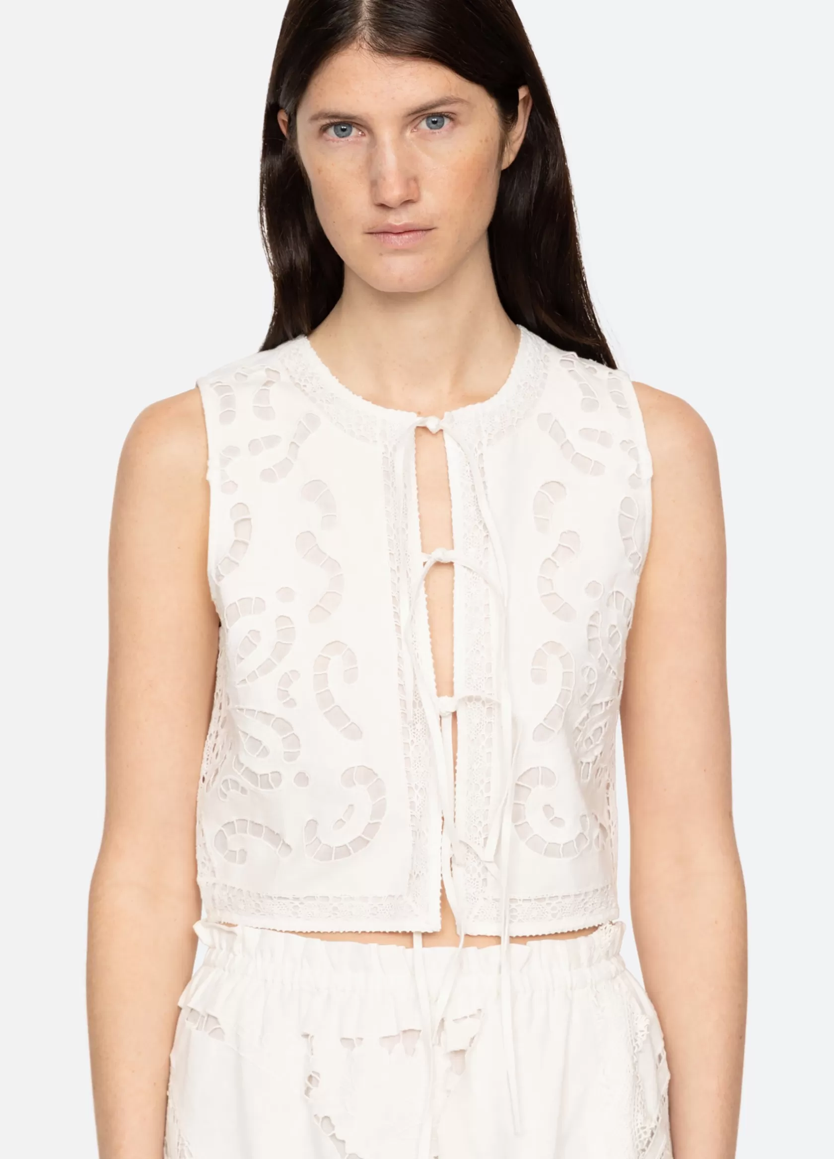The Edith vest features embroidered lace detailing throughout and front tie closures.Details:self-90% cotton, 10% linenl…
