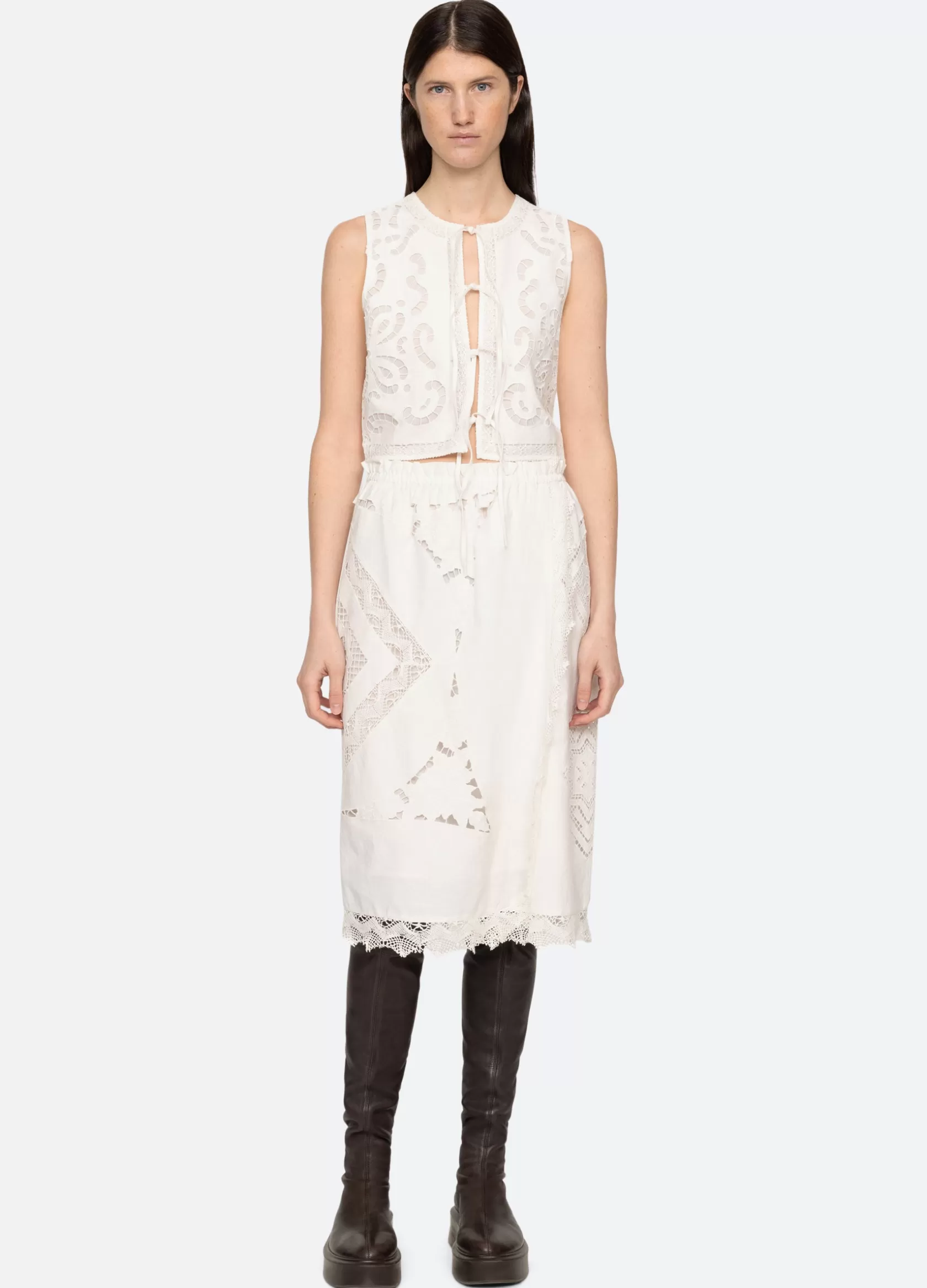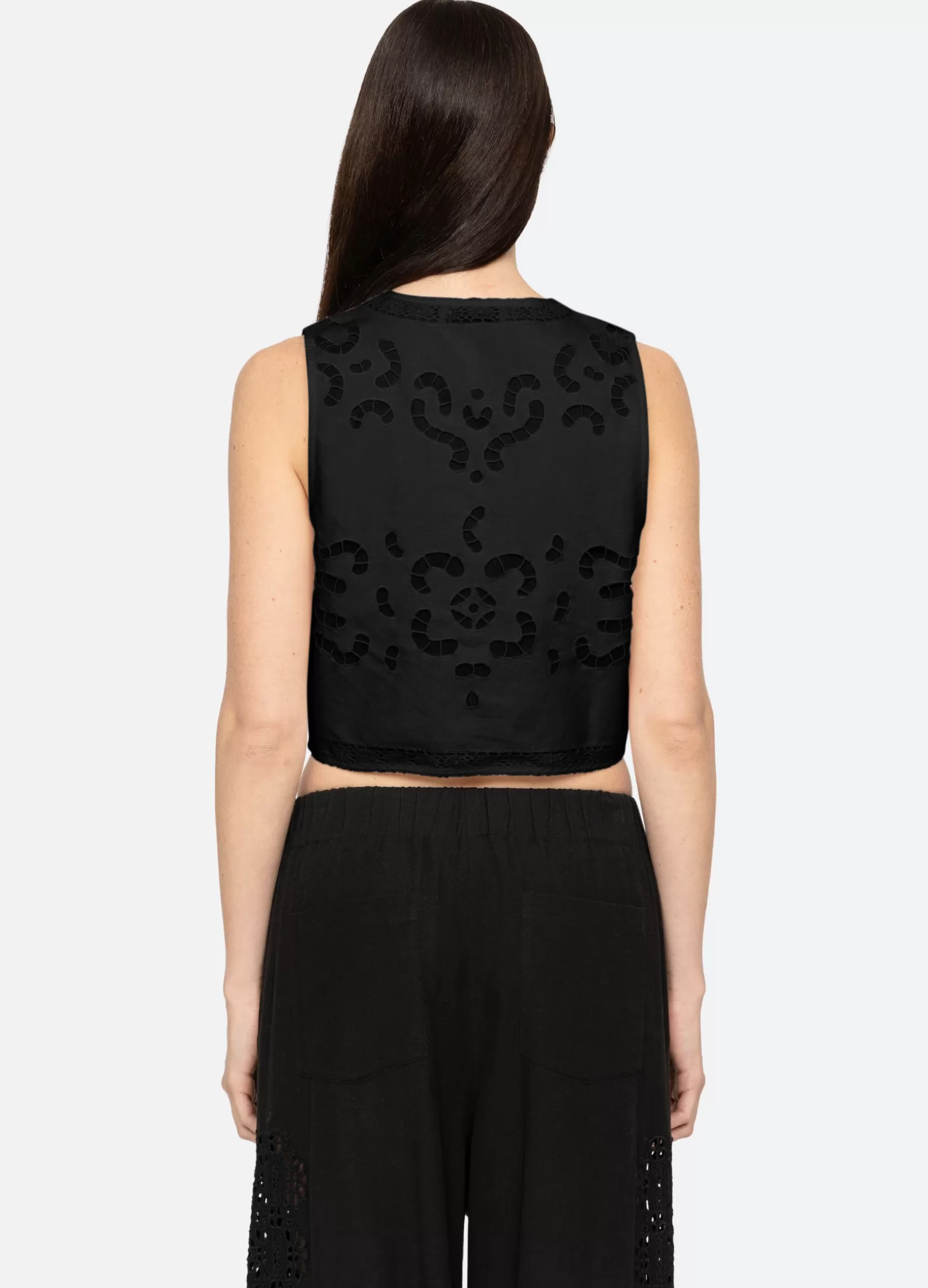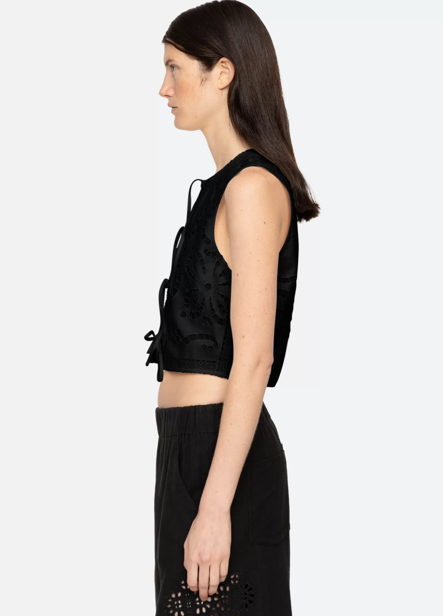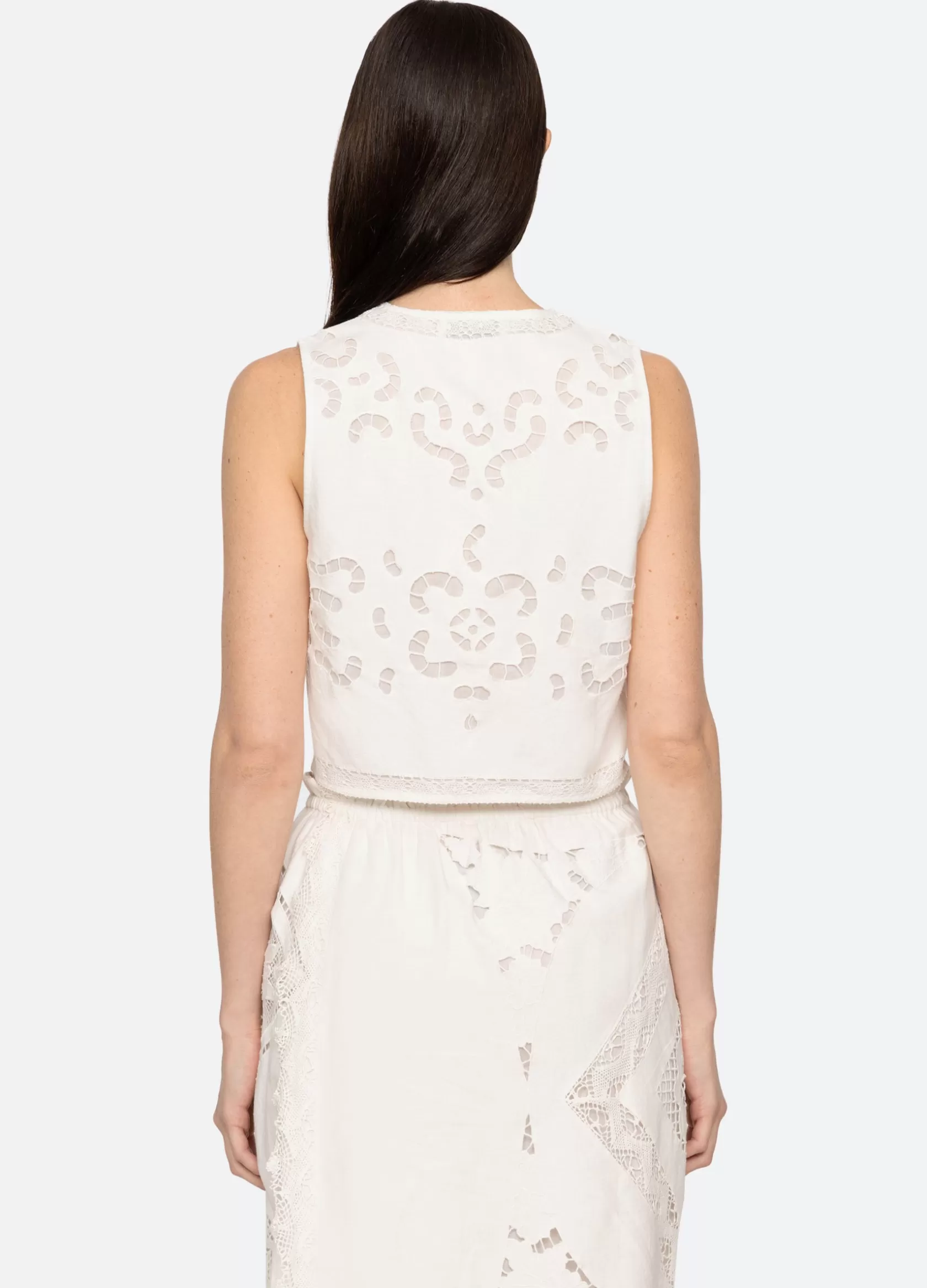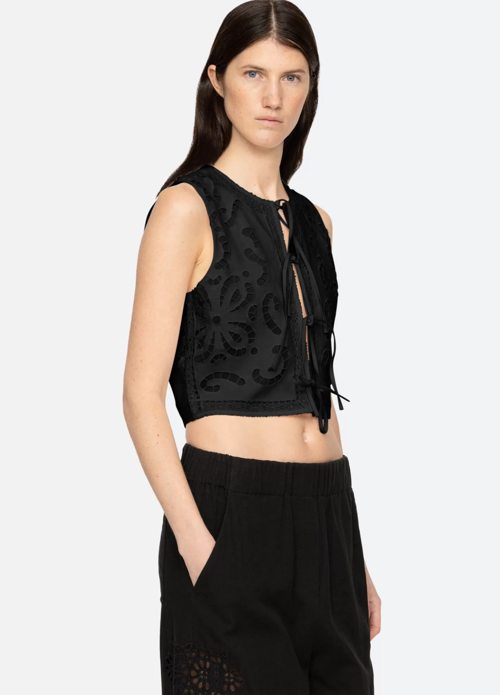 The Edith vest features embroidered lace detailing throughout and front tie closures.Details:self-90% cotton, 10% linenl…