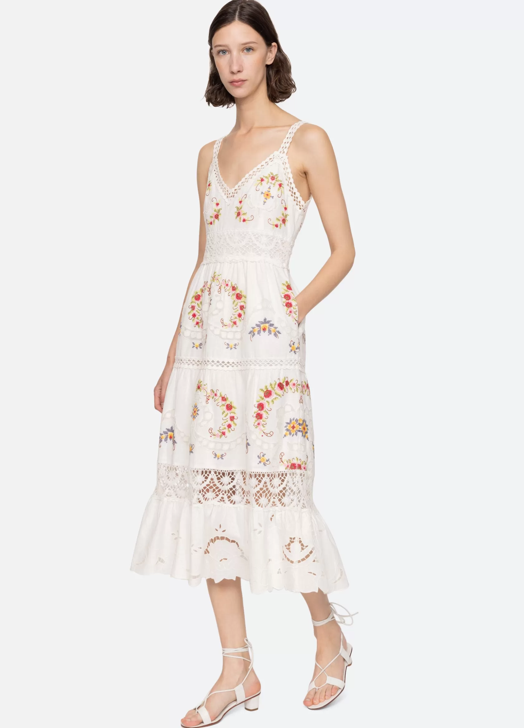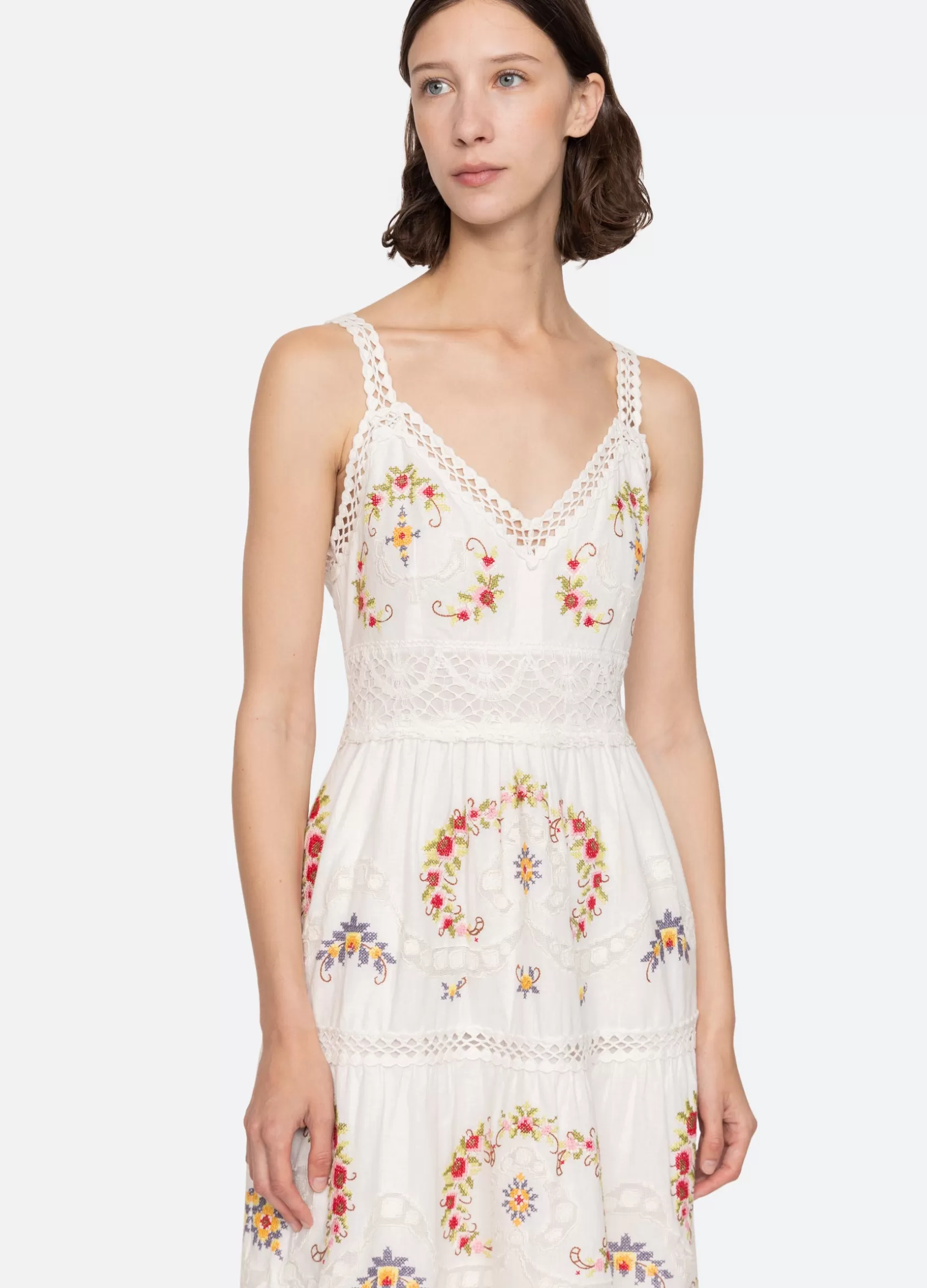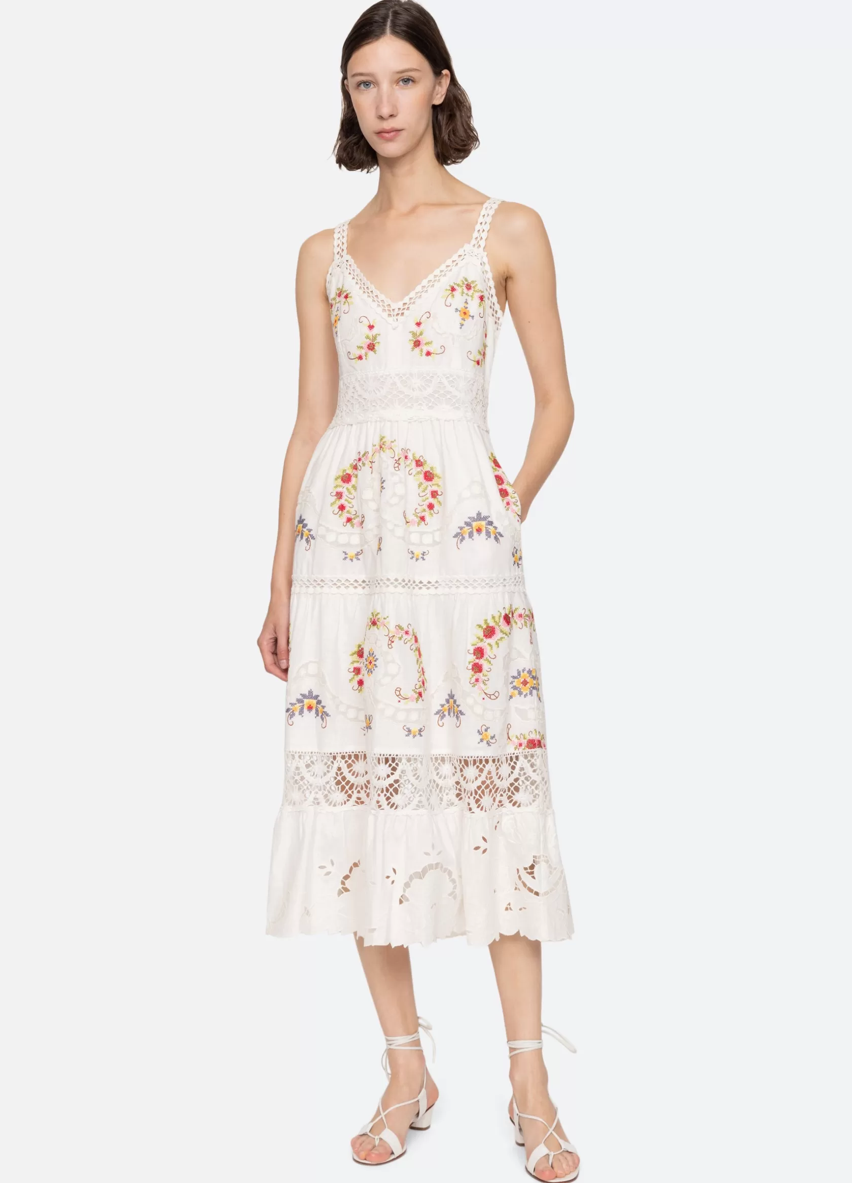 The Edwina dress features cross stitch embroidery throughout and lace trim detailing.Details:self-70% cotton, 30% lin…