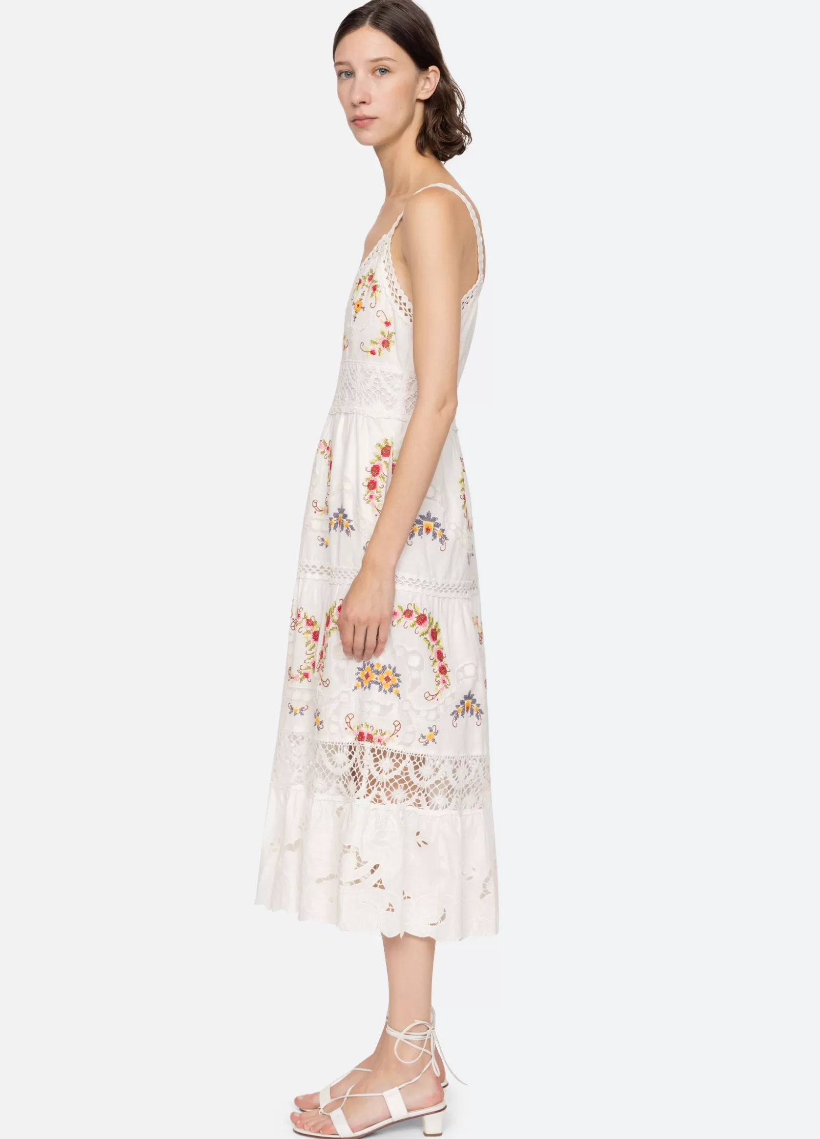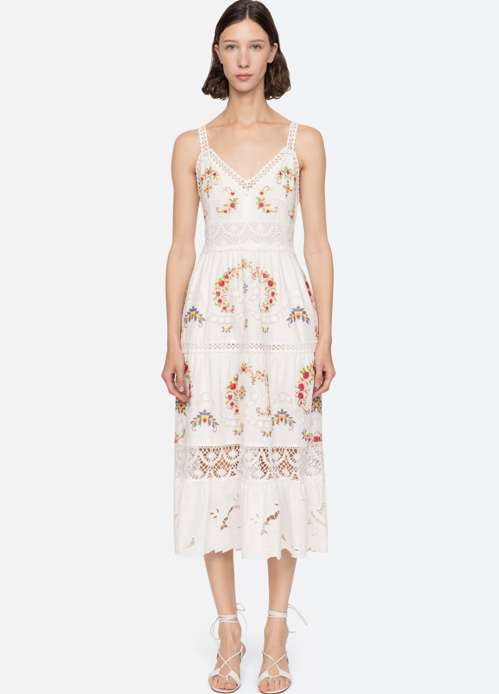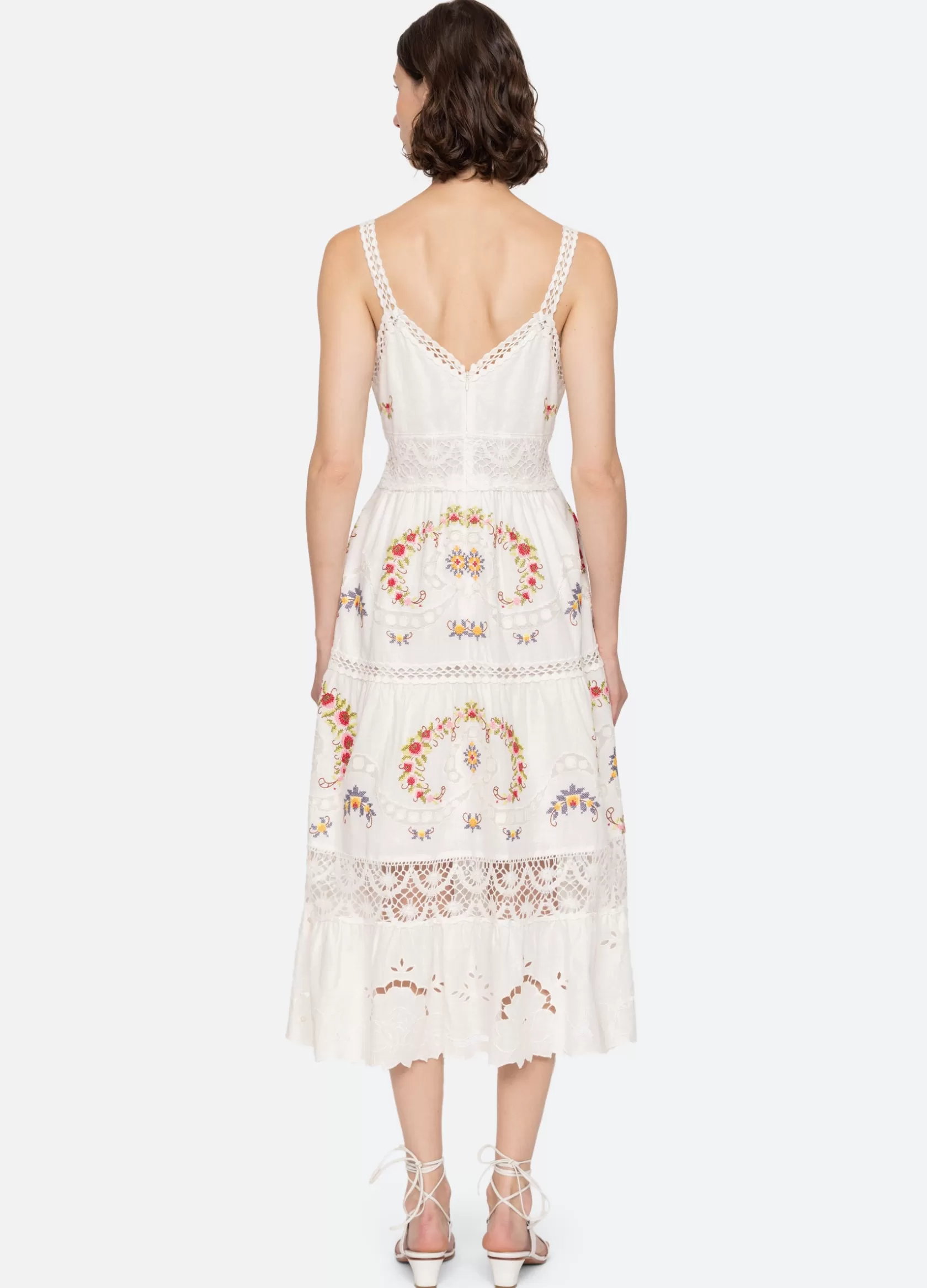 The Edwina dress features cross stitch embroidery throughout and lace trim detailing.Details:self-70% cotton, 30% lin…
