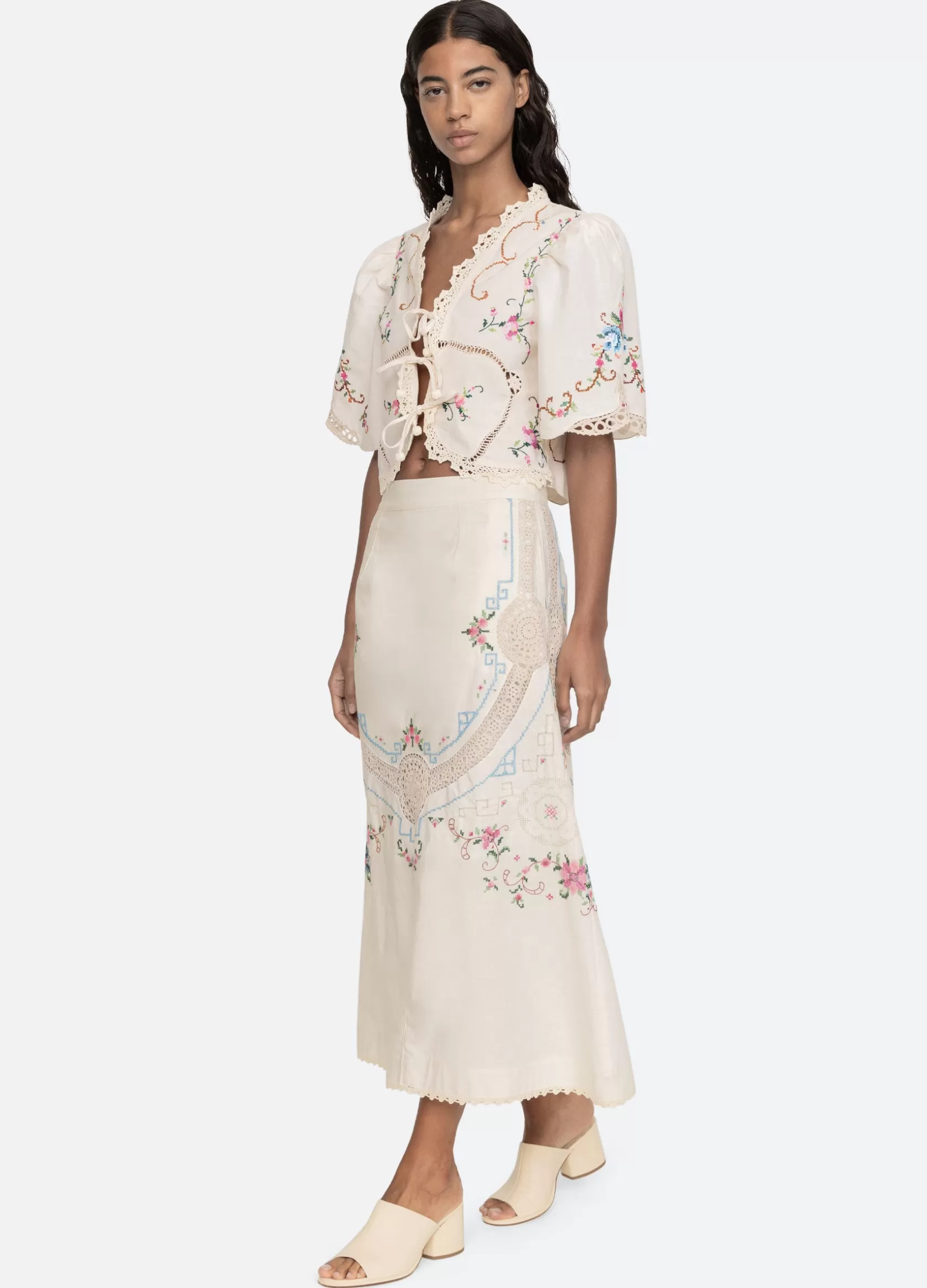 The Edwina skirt features cross stitch embroidery throughout and crochet trim detailing.Details:self-70% cotton, 30%…
