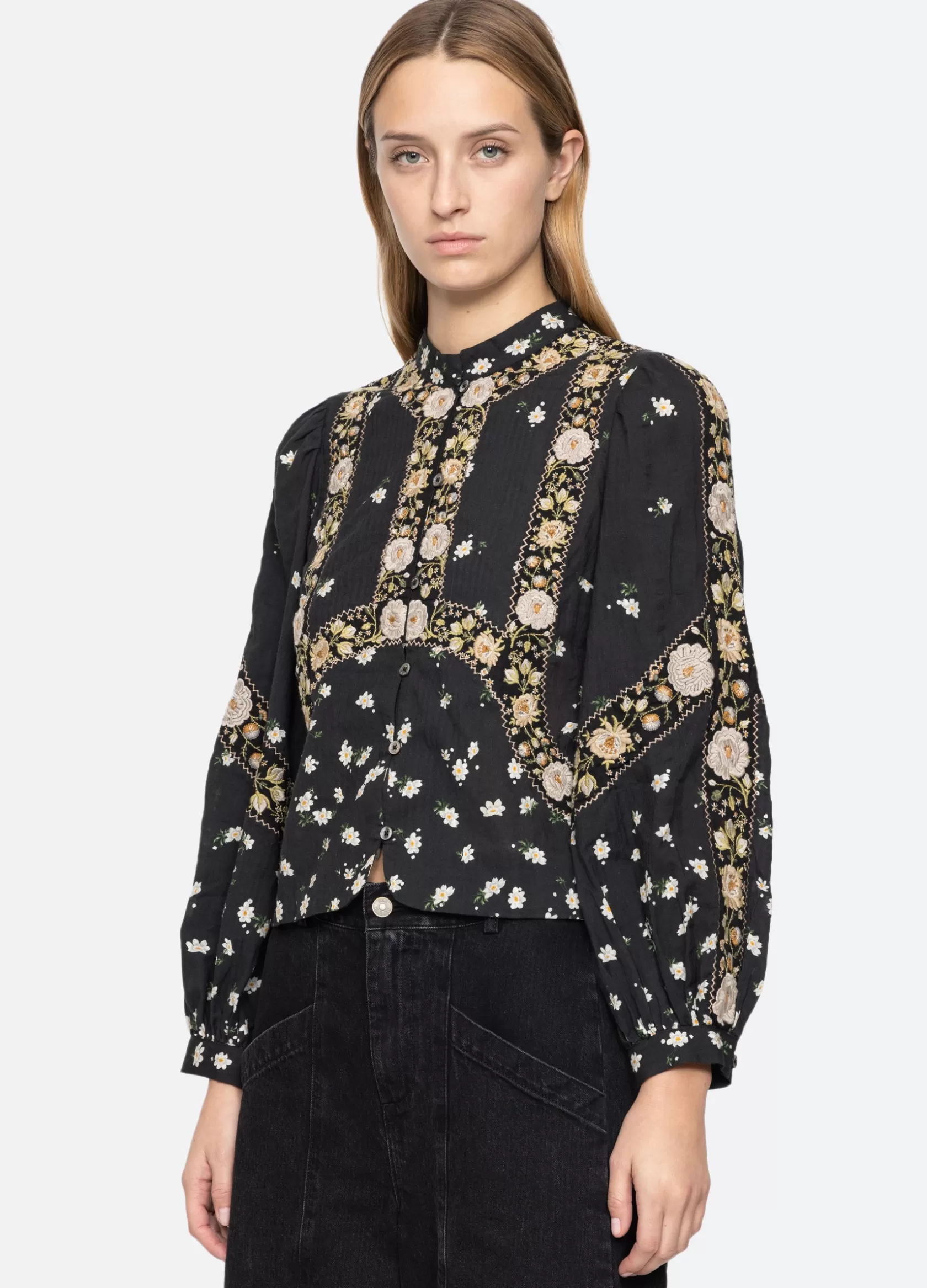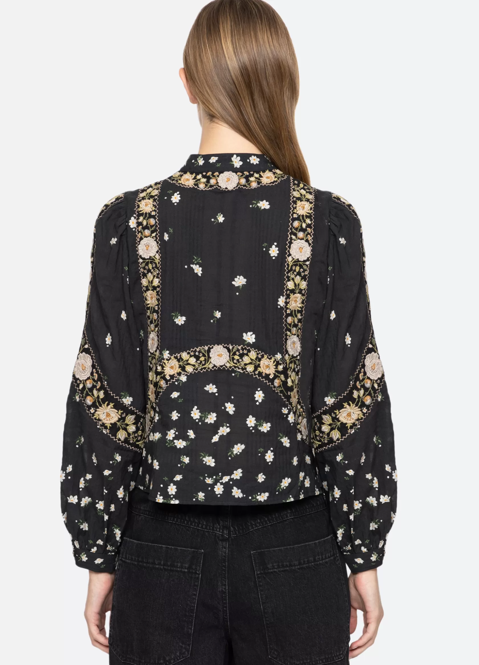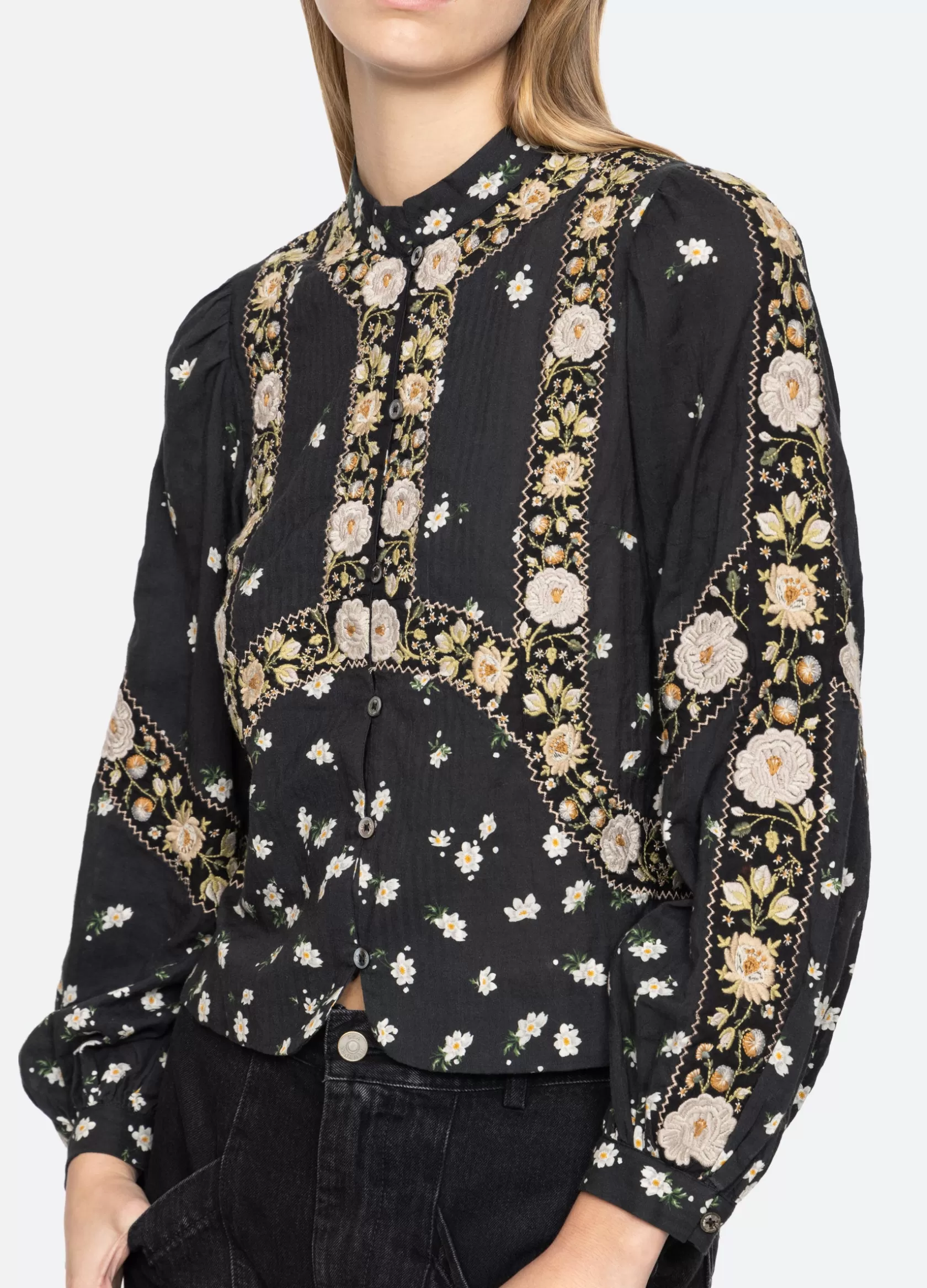 The Elizabeth floral print top features long puff sleeves and floral embroidered detailing throughout.