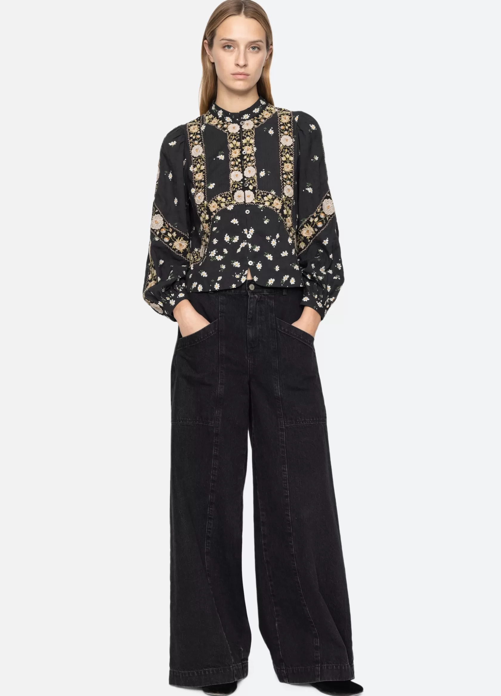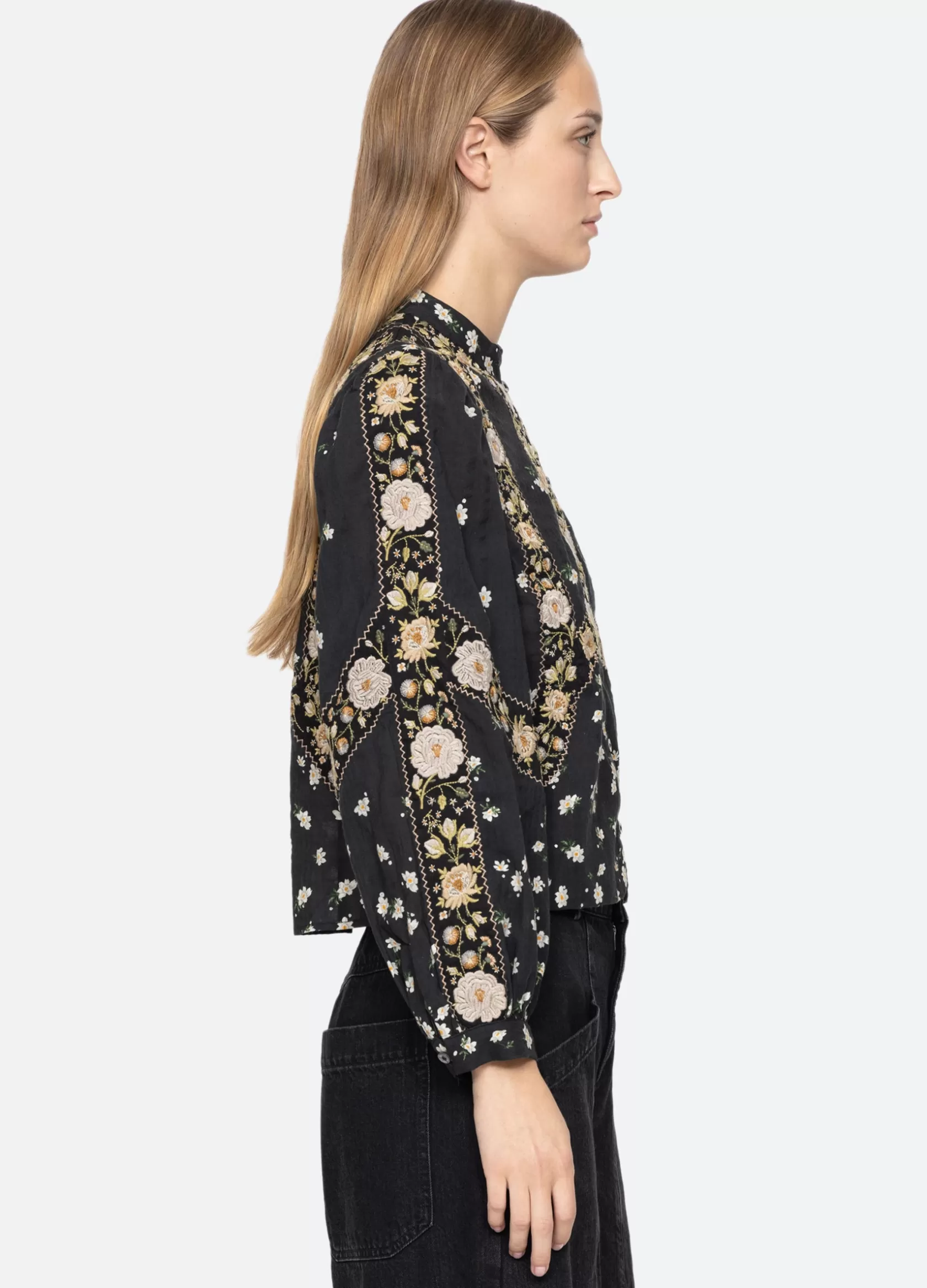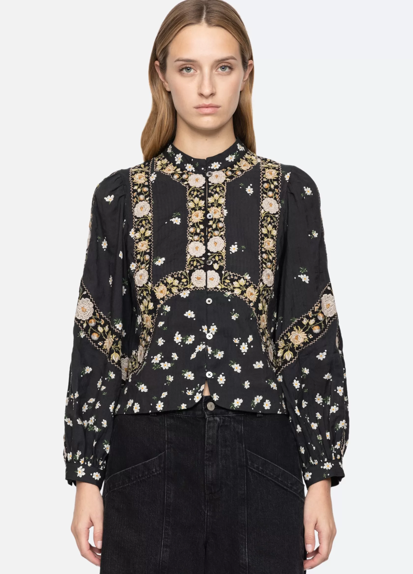 The Elizabeth floral print top features long puff sleeves and floral embroidered detailing throughout.