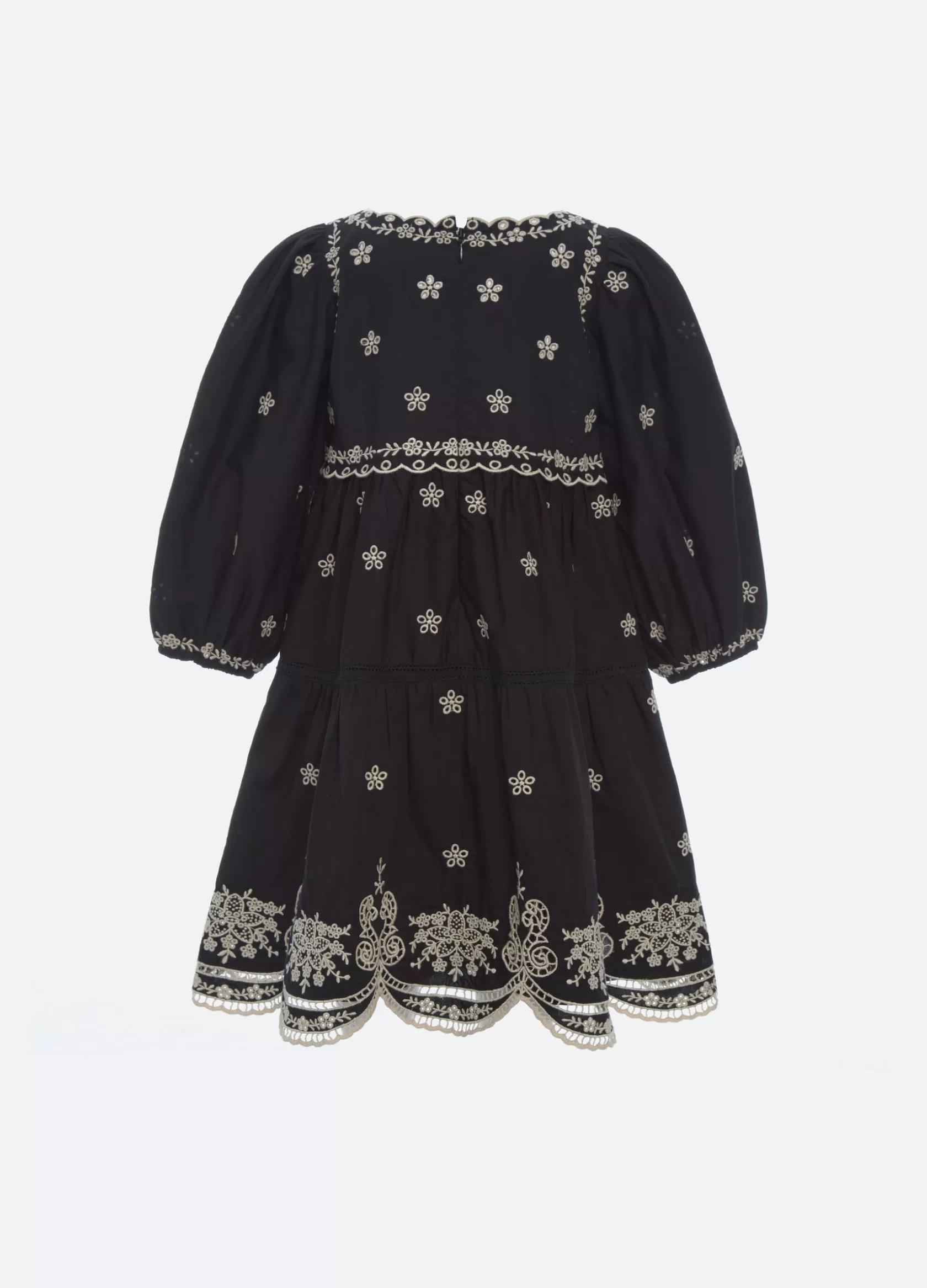 The Kingsley kids dress features embroidered detailing and a scalloped square neckline. Part of our mommy & me coordinating collection.