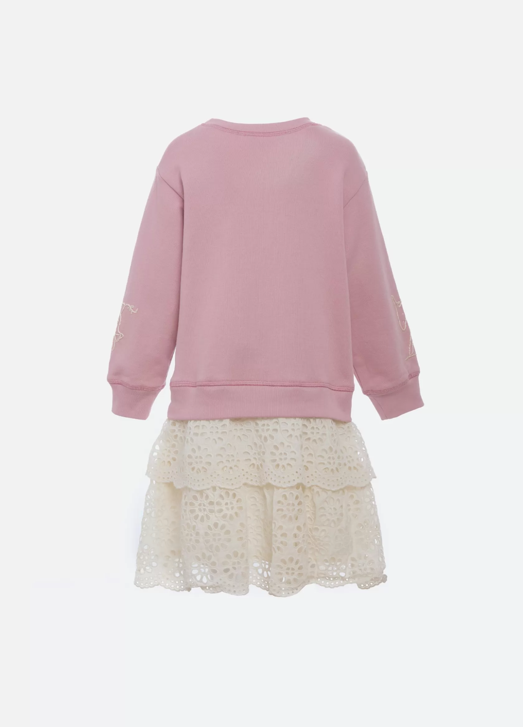 The Lainey embroidery kids combo sweatshirt dress features embroidered detailing and tiered eyelet skirt. Part of our m…
