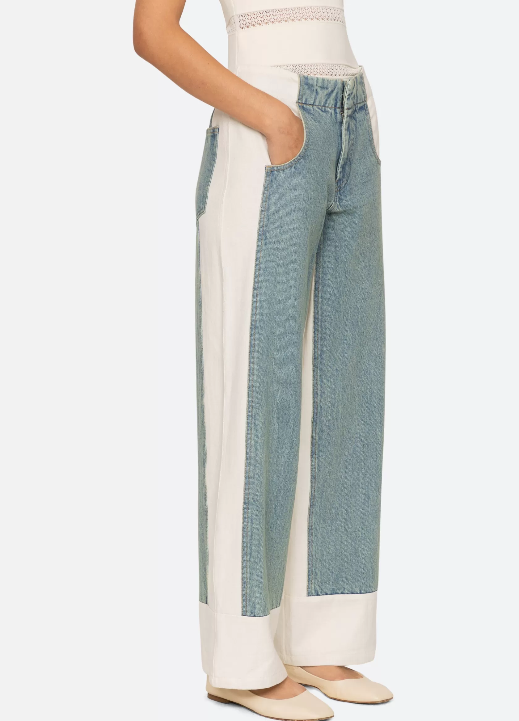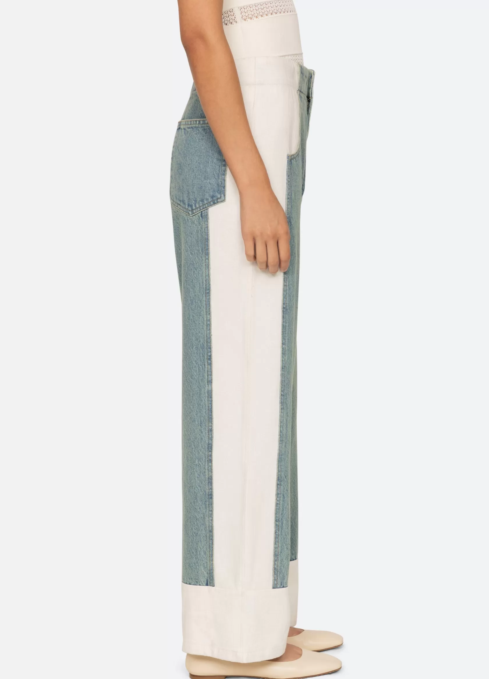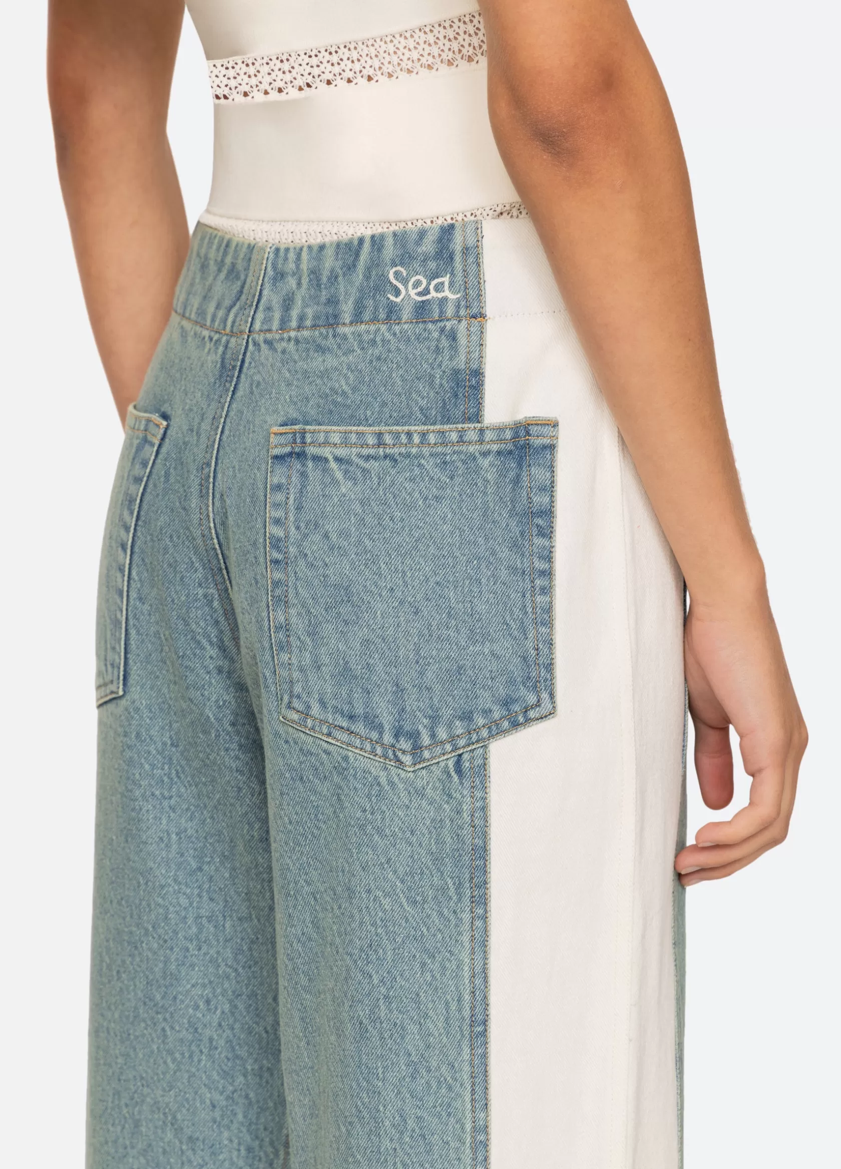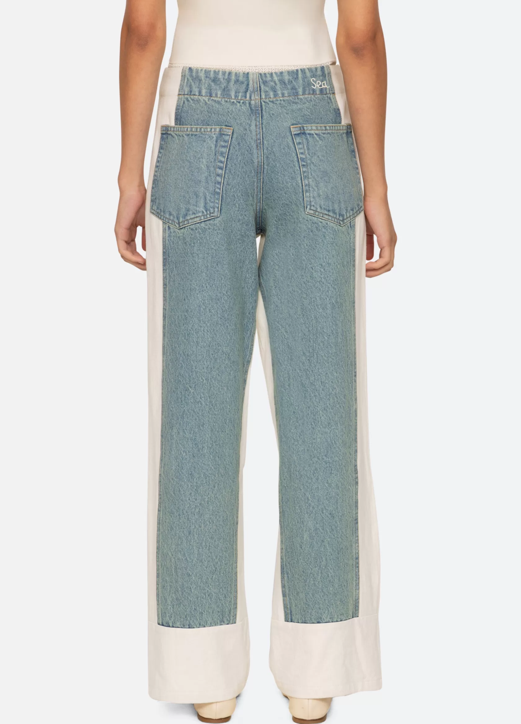 The Liam pieced denim jeans feature contrasting two tone denim and embroidered ‘Sea’ logo.