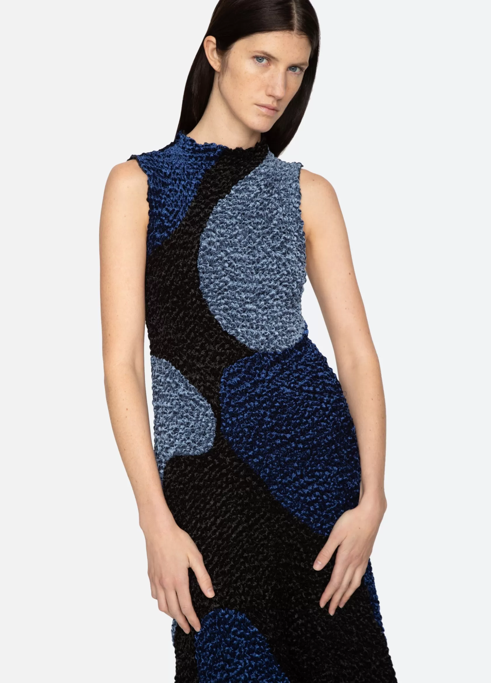 The Malene crushed velvet patchwork dress features a smocked textured velvet and midi silhouette.Details:100% polyesters…