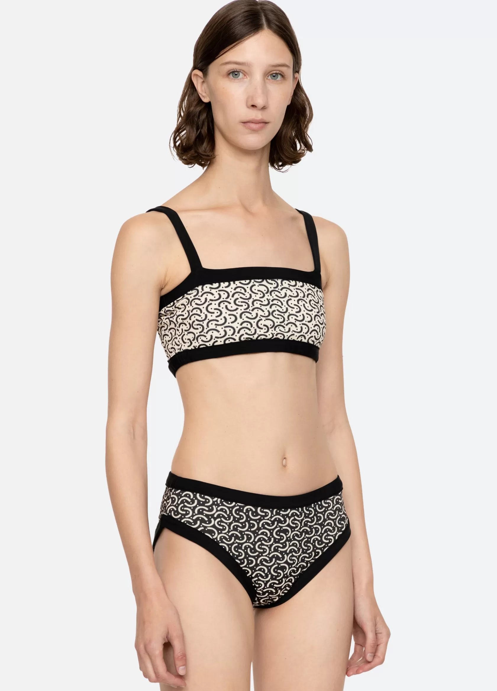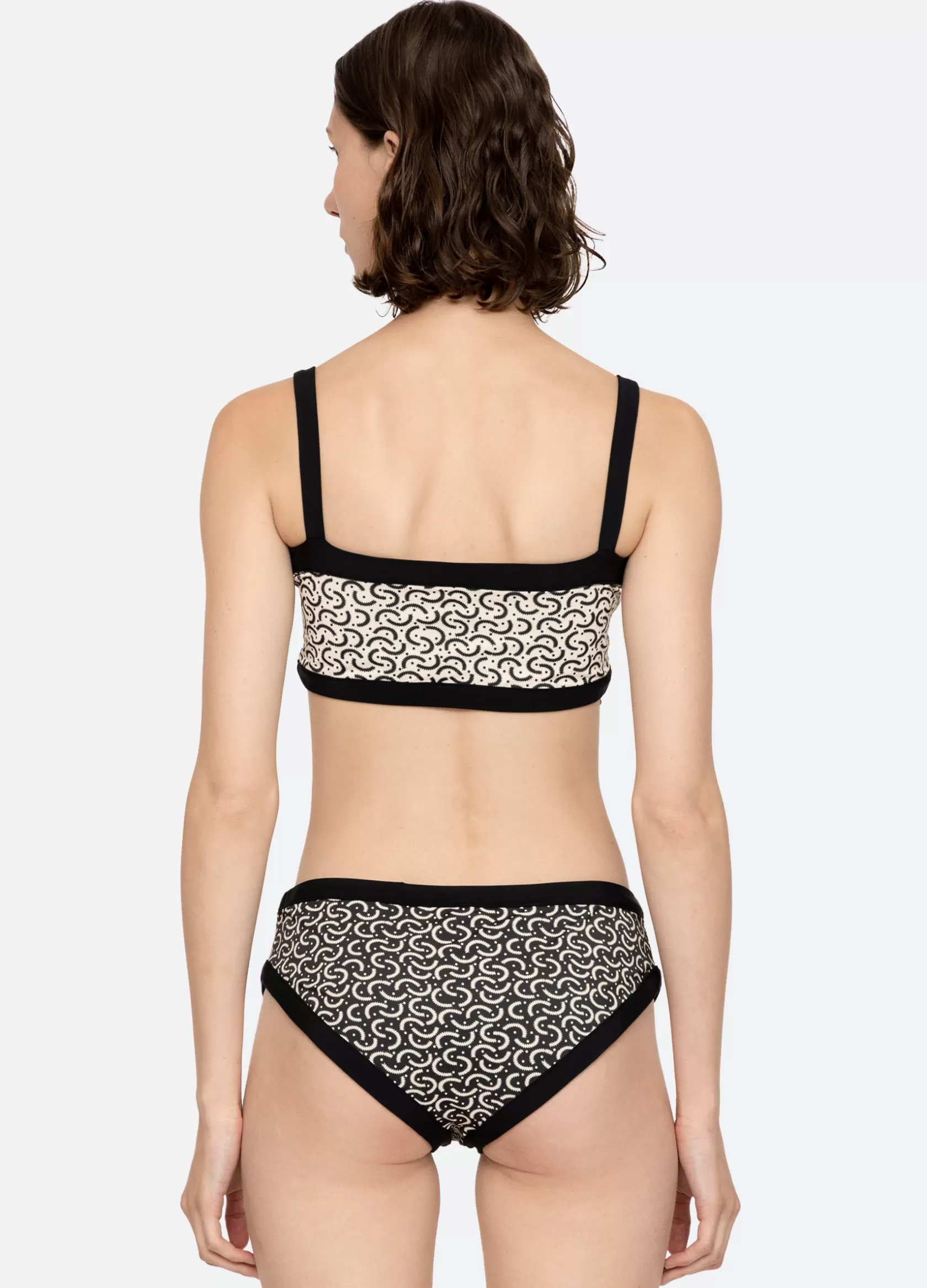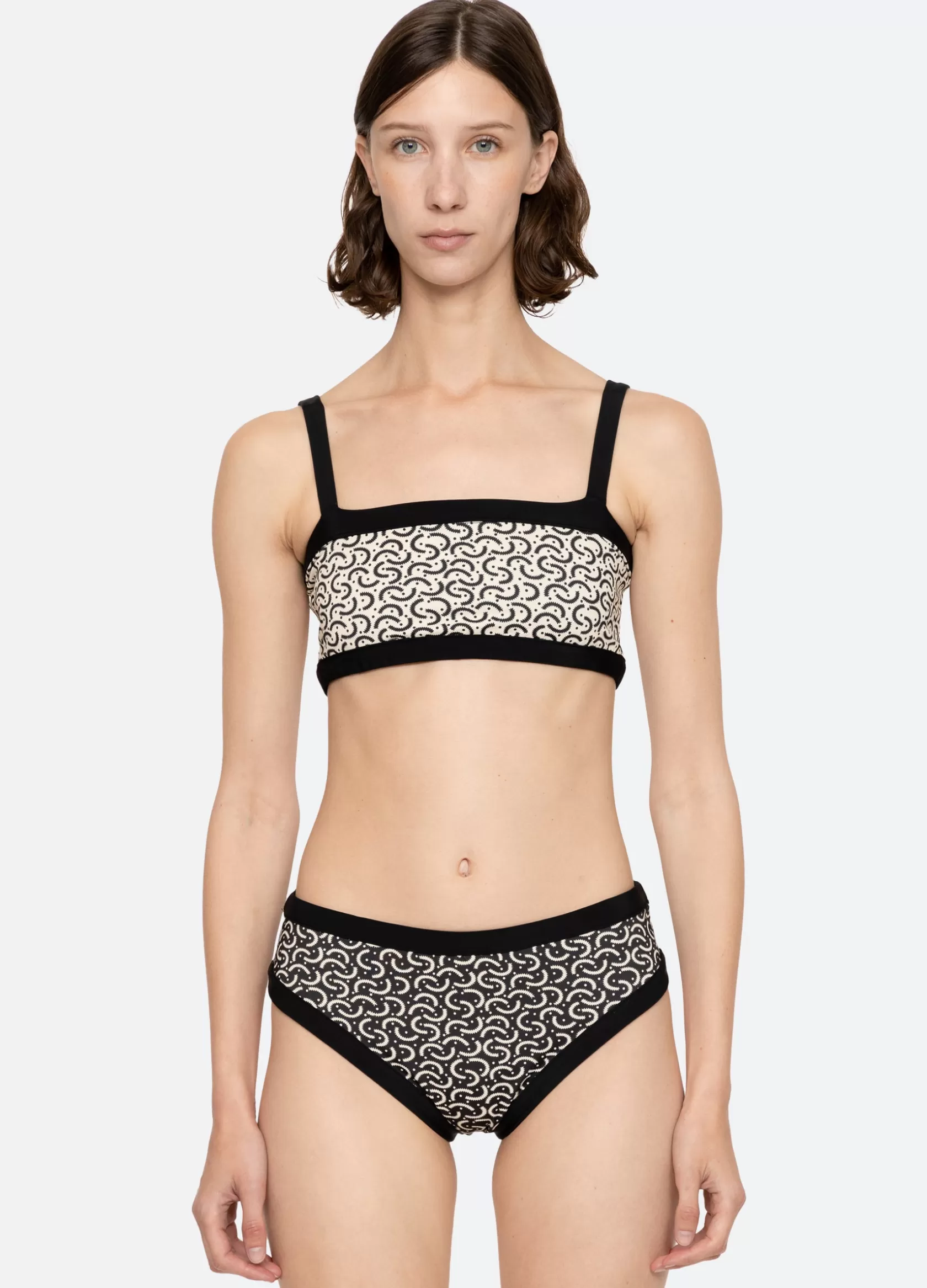 The Panna reversible bikini top features a contrasting border and a geometric print that reverses into a solid. Details…