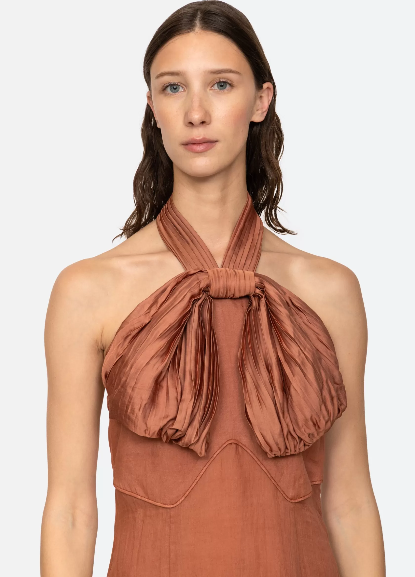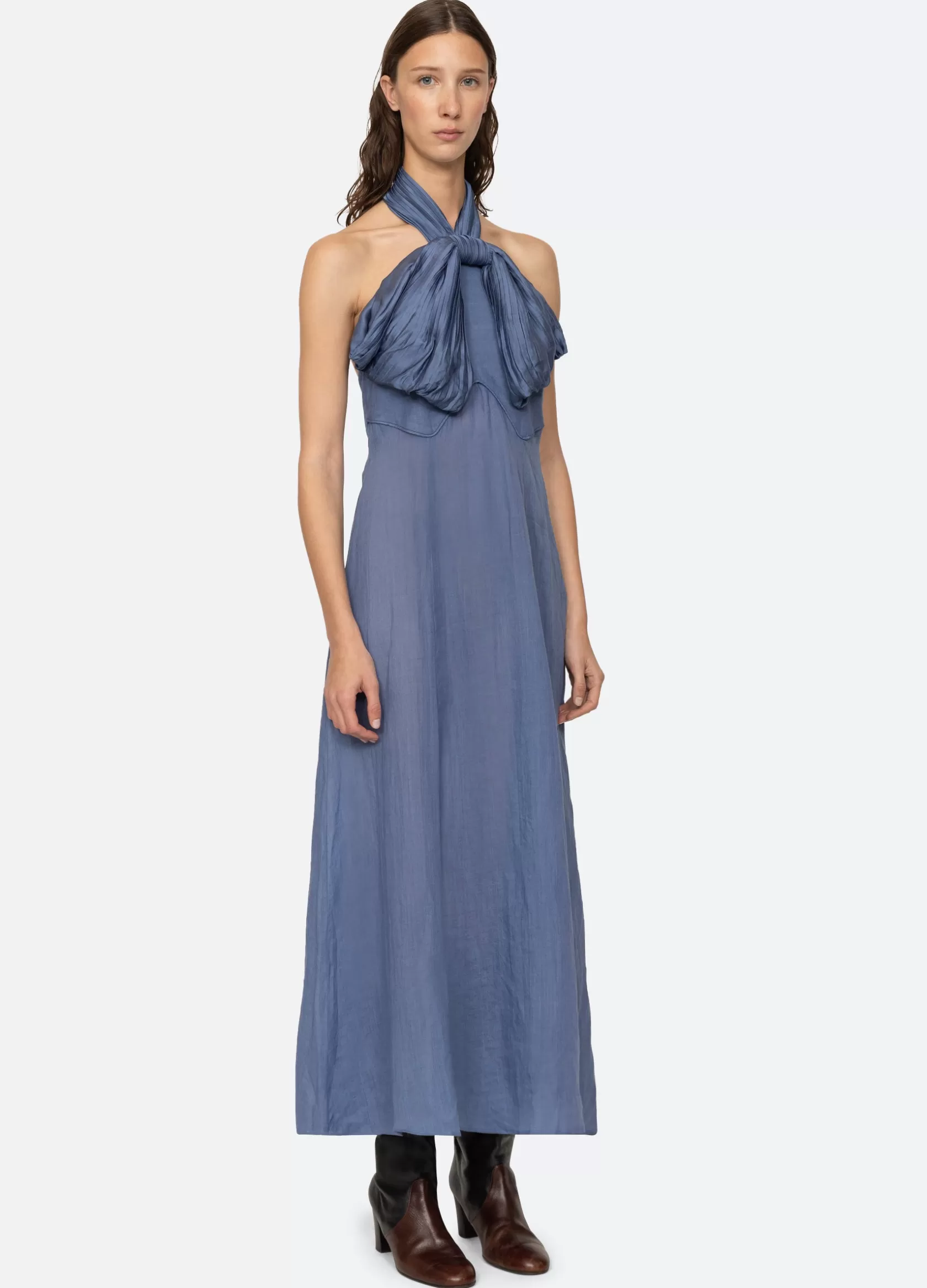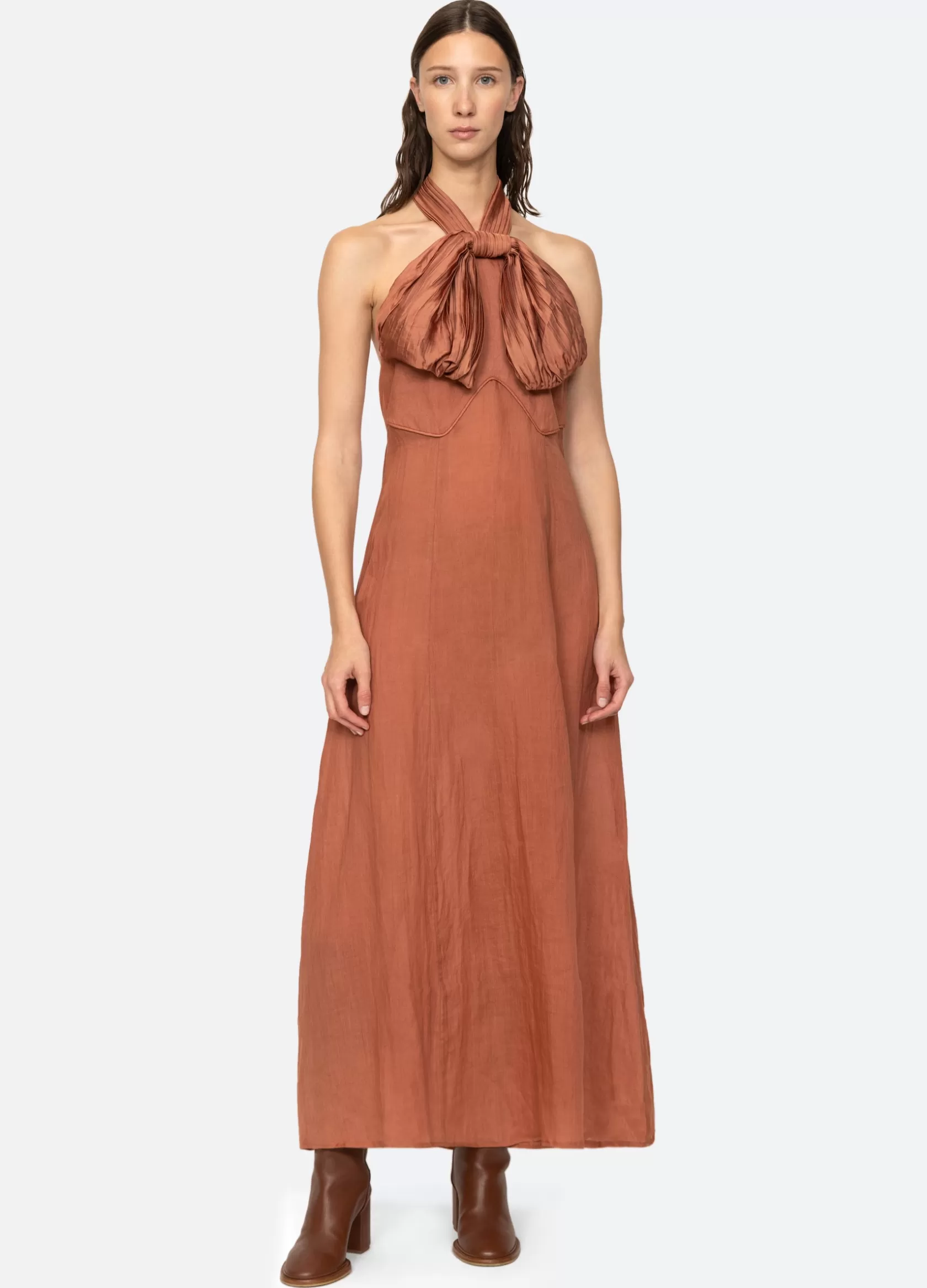 The Risa halter neck dress features an oversized bow detail.Details:self-100% ramiecombo-100% viscoselining-100% cottoni…