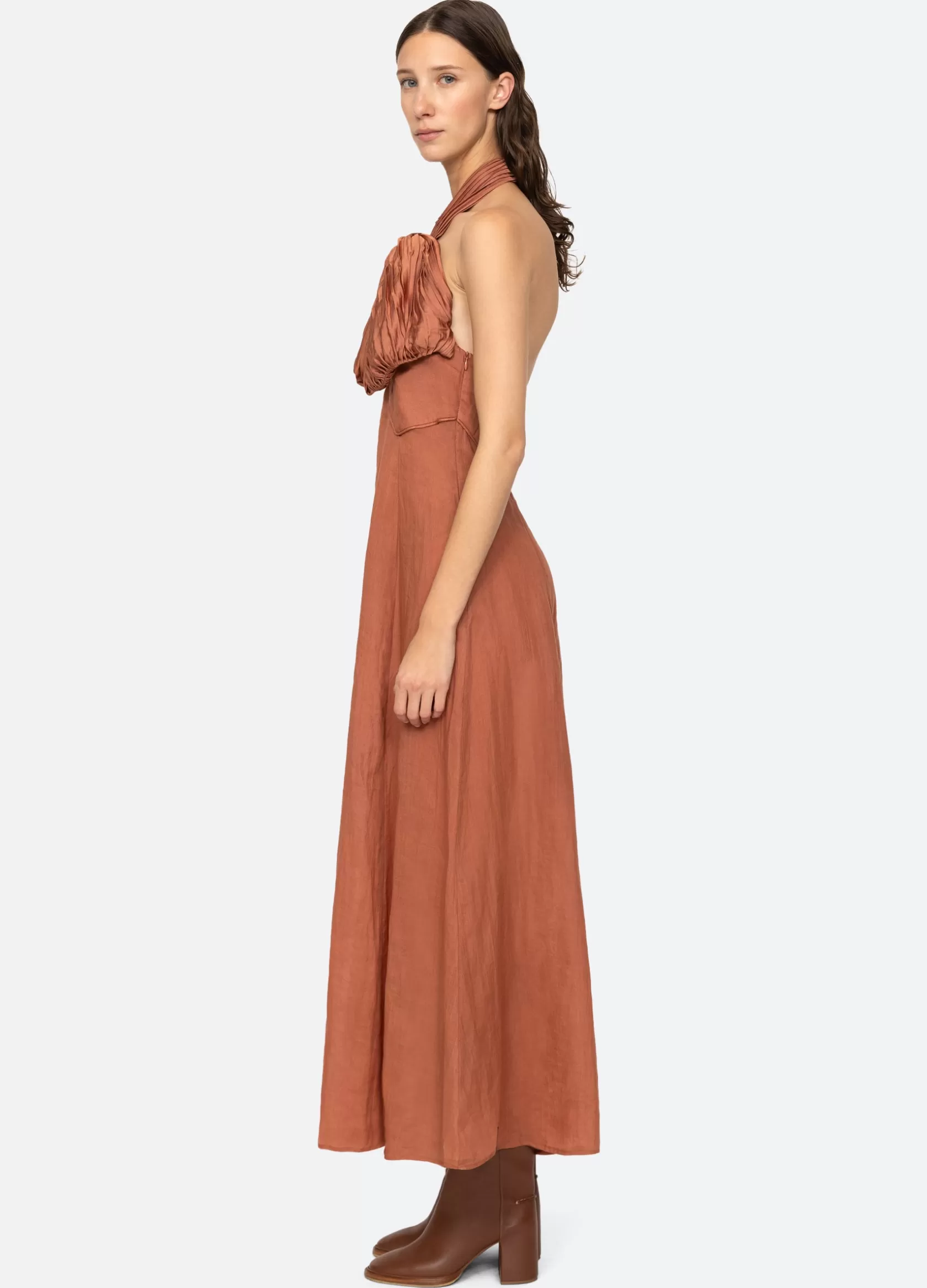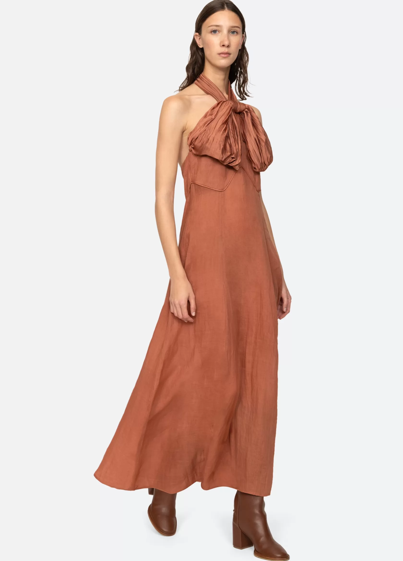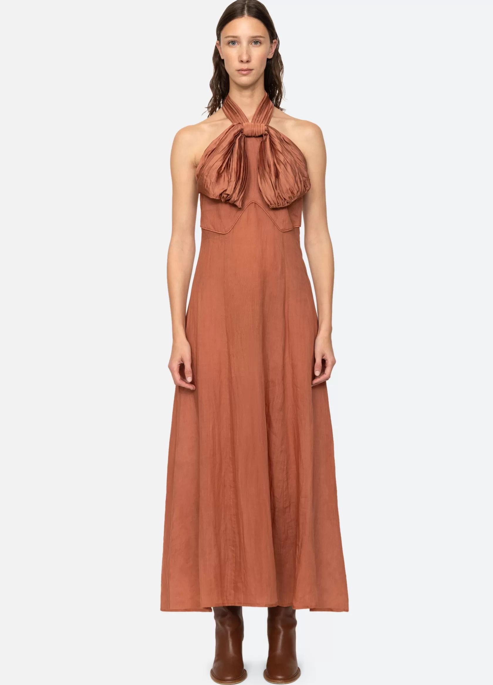 The Risa halter neck dress features an oversized bow detail.Details:self-100% ramiecombo-100% viscoselining-100% cottoni…