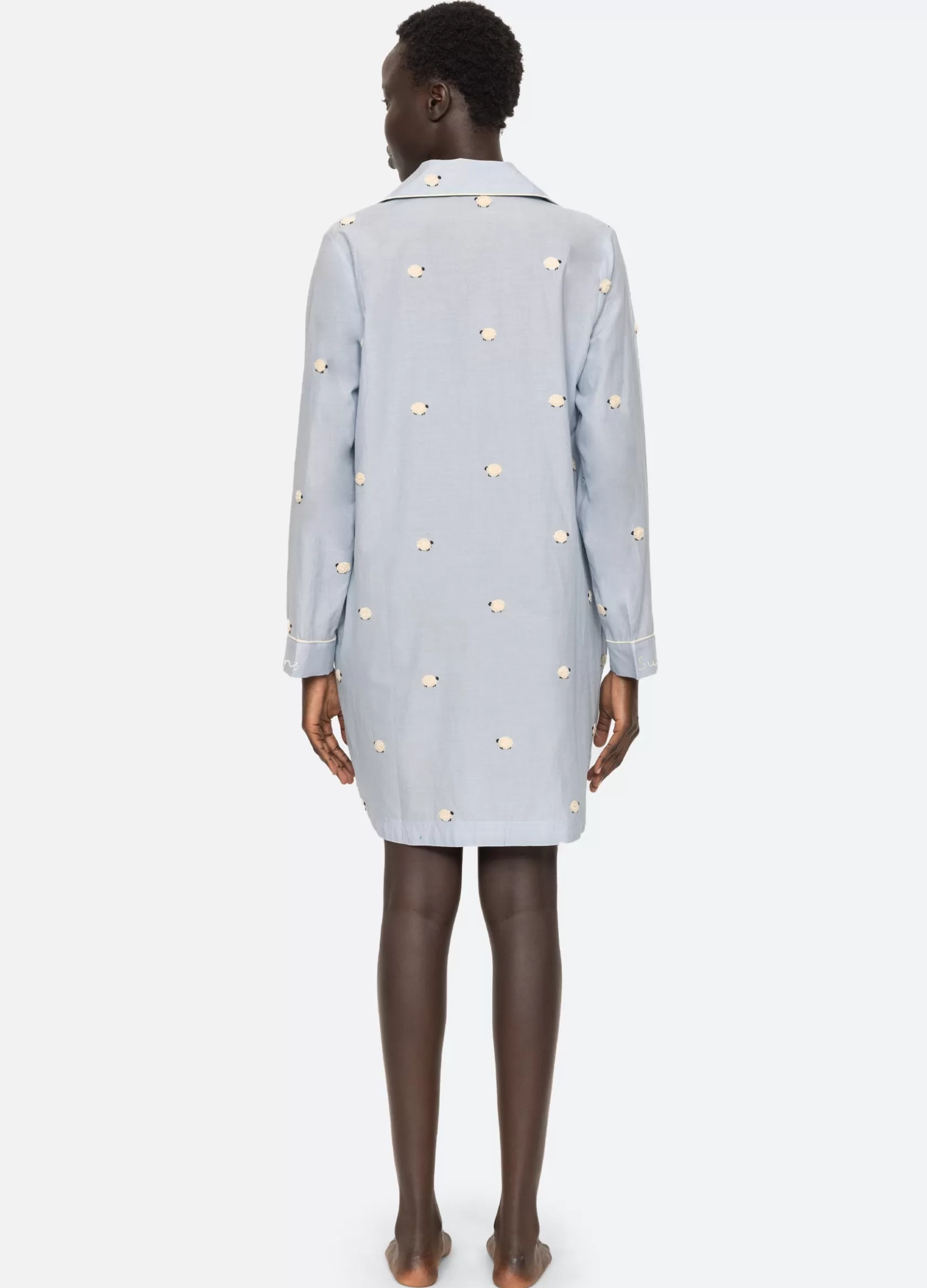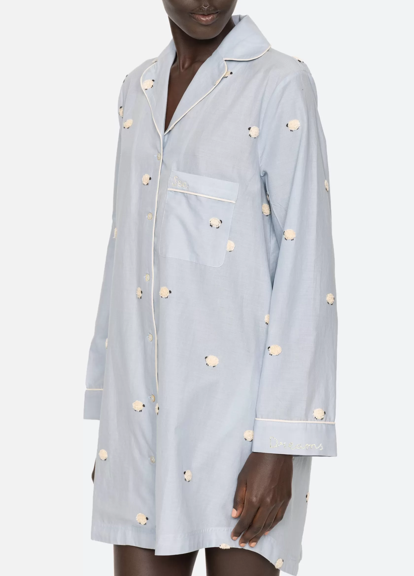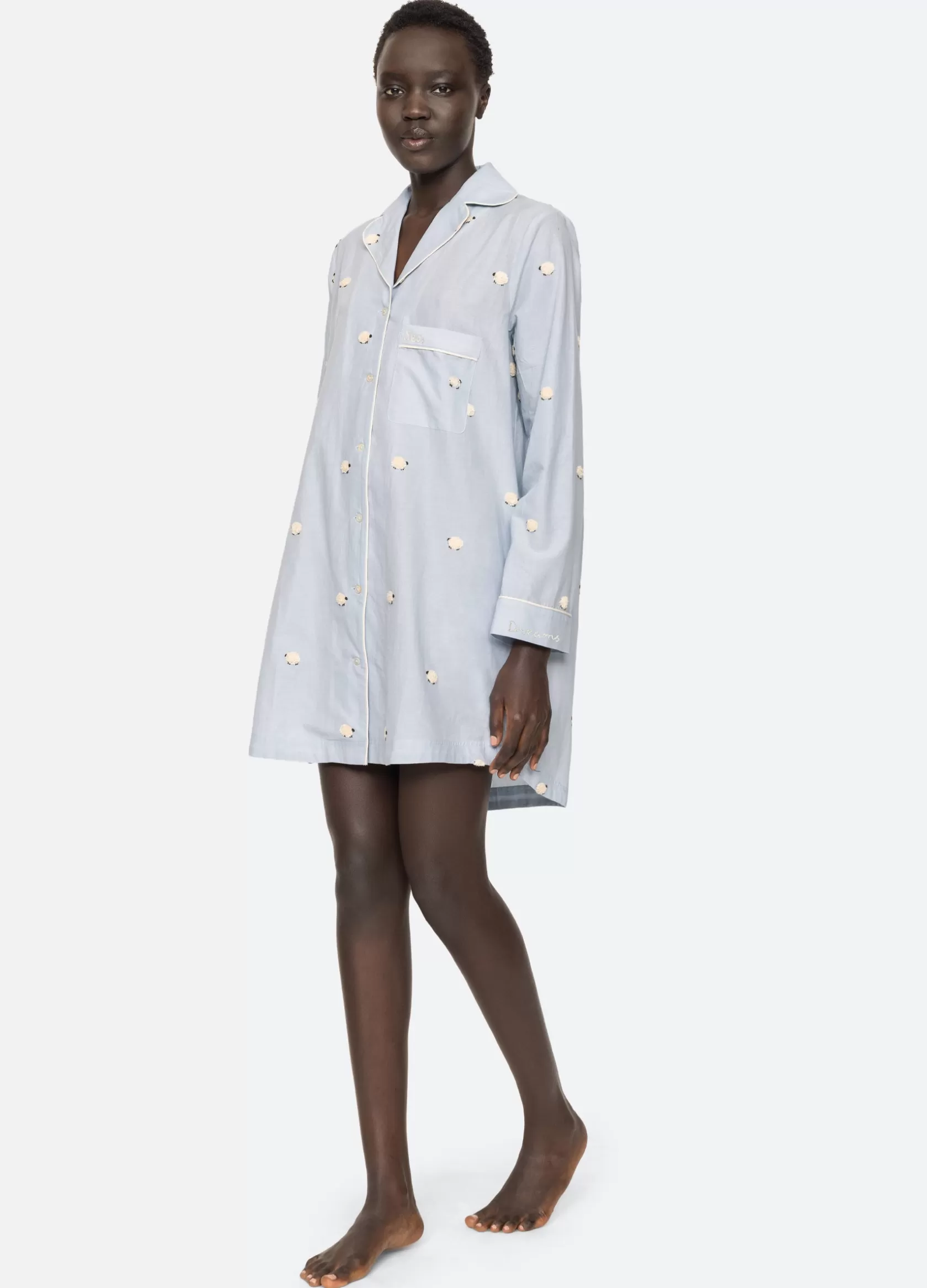 The Sheep pajama night shirt features embroidered sheep accents throughout.