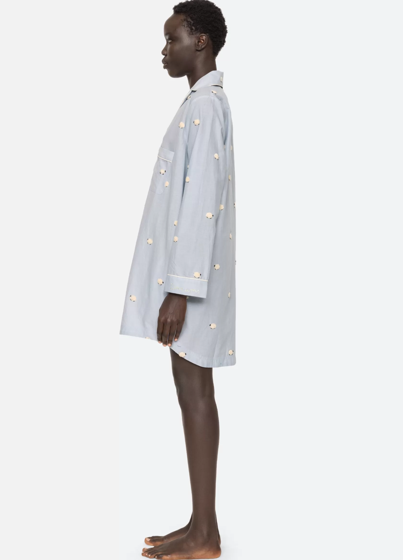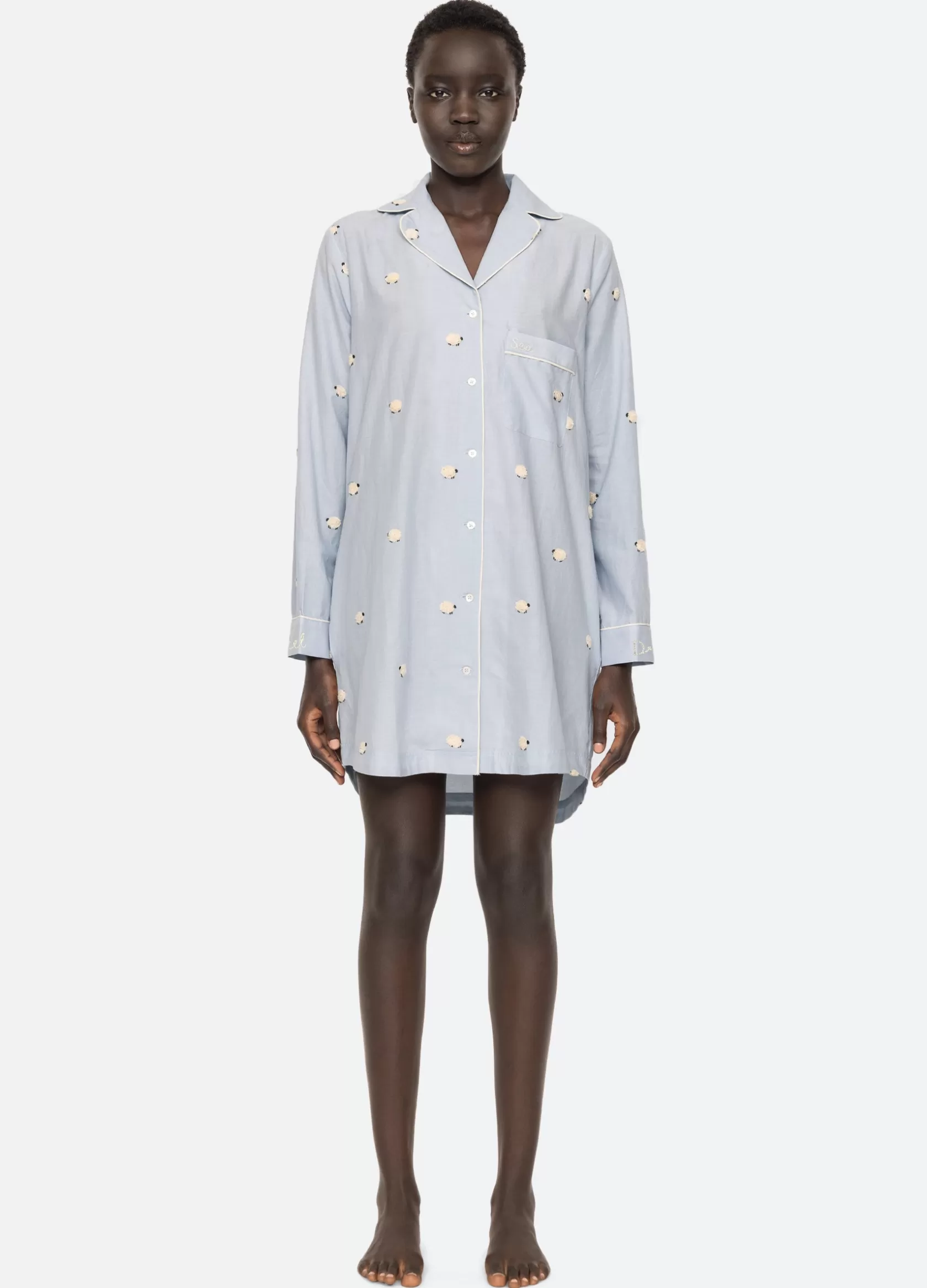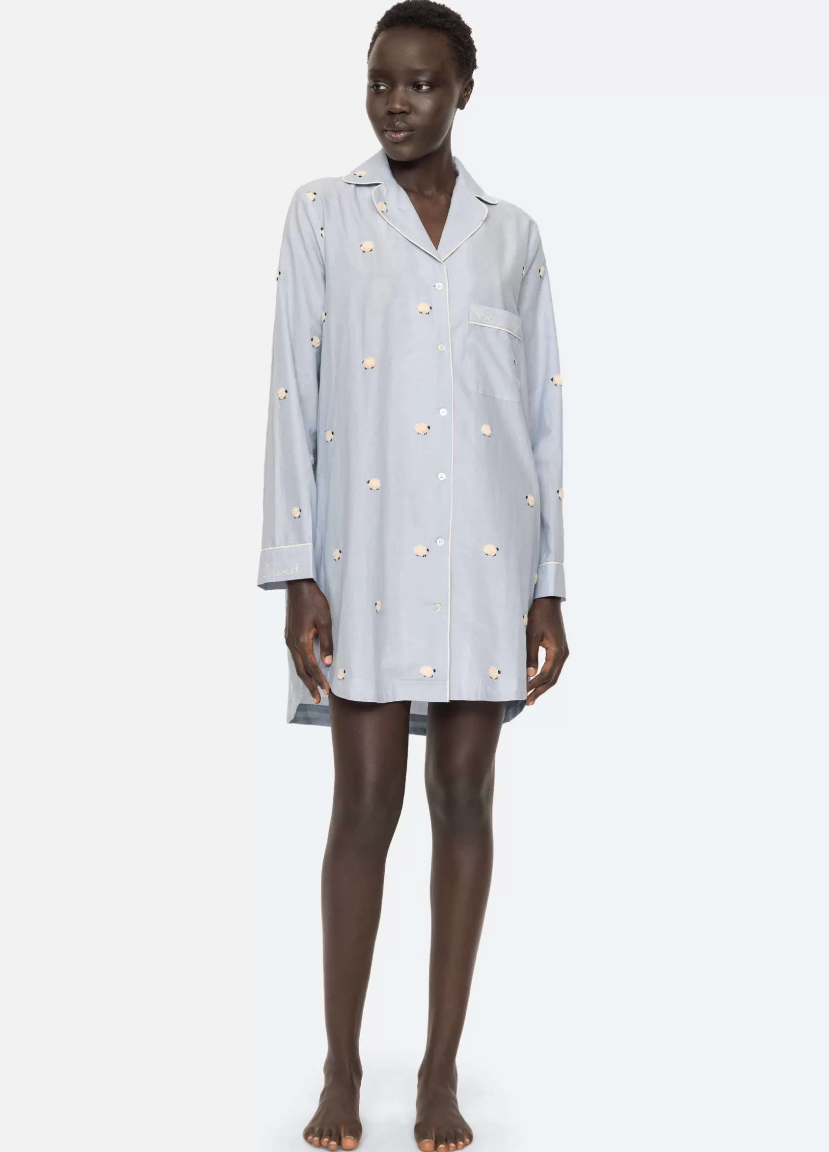 The Sheep pajama night shirt features embroidered sheep accents throughout.