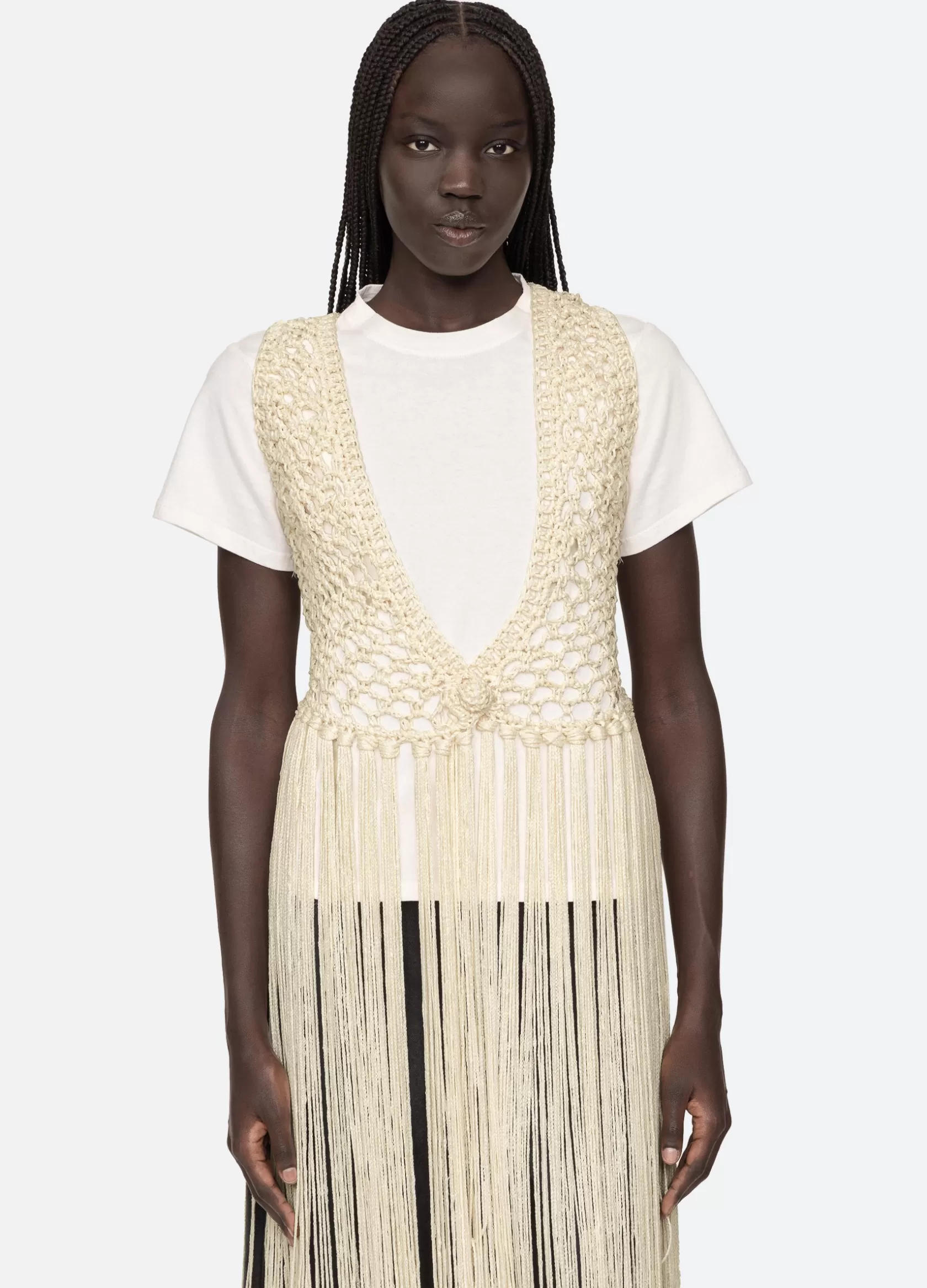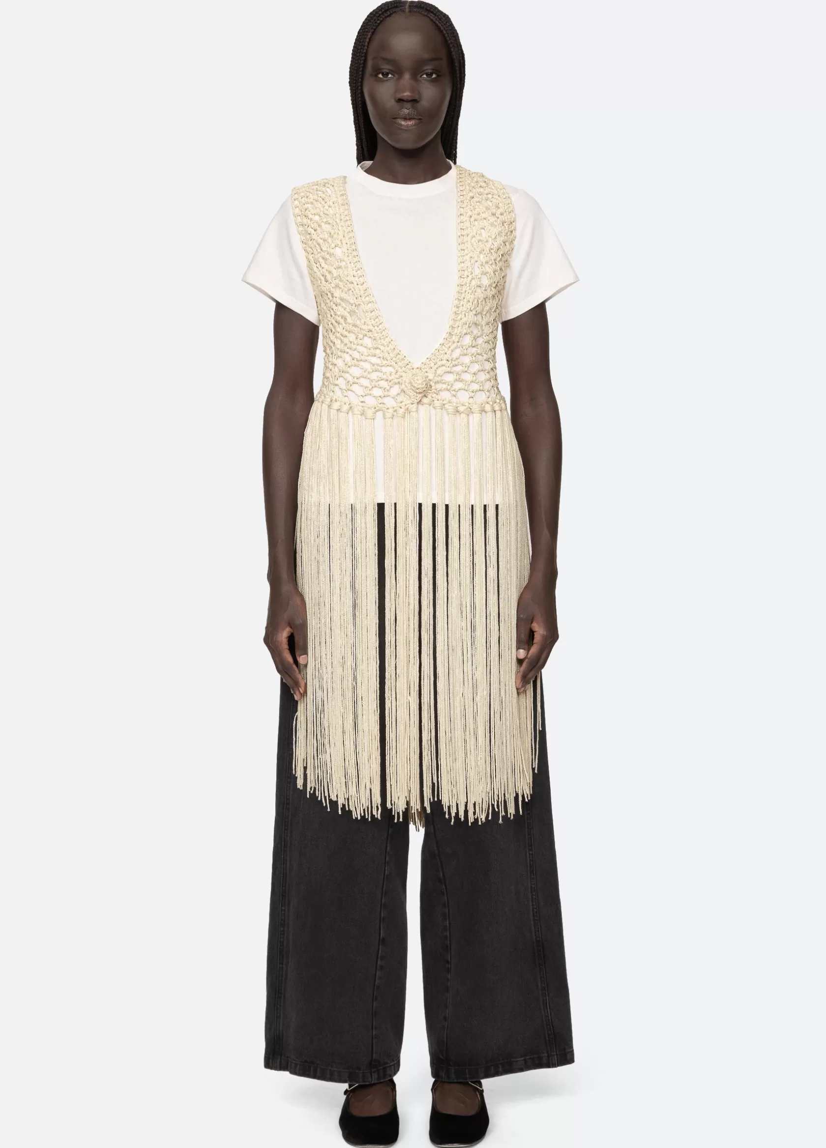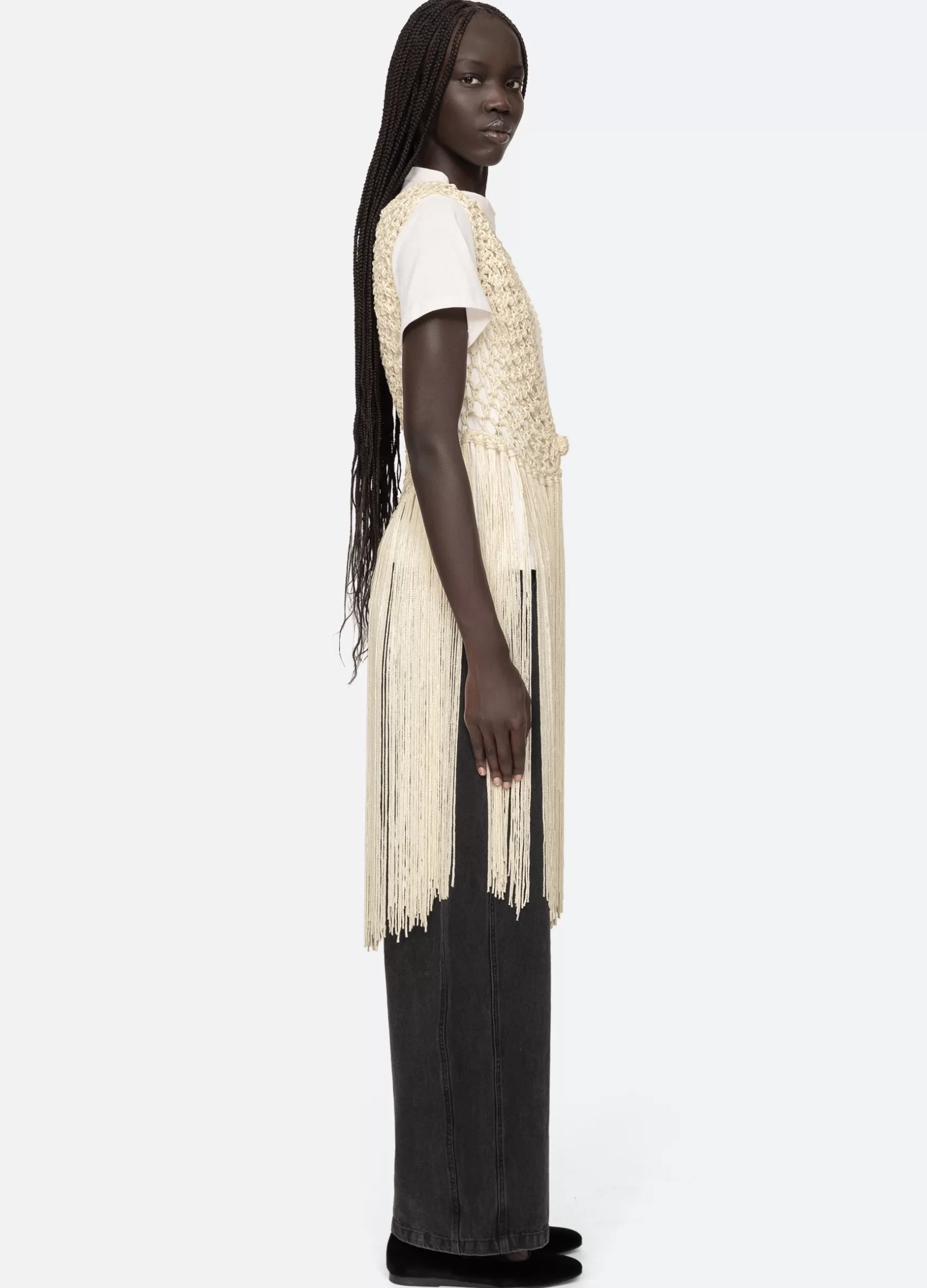 The Simonne macramé vest features fringe detailing.Details:100% polyesterbutton front closuredesigned for a relaxed fi…